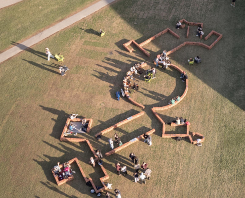 12 Rooms, geçmişi belgelemek ile bugün yaşanan yeni bir mekanın izlerini inşa etmek arasında bir yerde duruyor. Özel alandan çıkarak MIT’nin kamusal alanında kolektif olarak sahiplenilecek bir şekilde kurgulanıyor. Proje, yaşadığımız binalarda var olan “İnşa Edilmiş Hikayeler” üzerine düşünmeye bir davet niteliği taşıyor. Odaların hafızasının parçası olan olaylar, diyaloglar, tartışmalar ve icatlar, Cambridge’in tarihinde ve yapılı çevresinde önem taşıyan bir malzeme olan tuğla üzerinden anlatılıyor. İki Saarinen binası, Şapel ve Oditoryum arasında yer alan 12 Rooms, Kresge Oval’de uzun, sığ bir duvar şeklinde bir tuğla çizgisi olarak beliriyor.