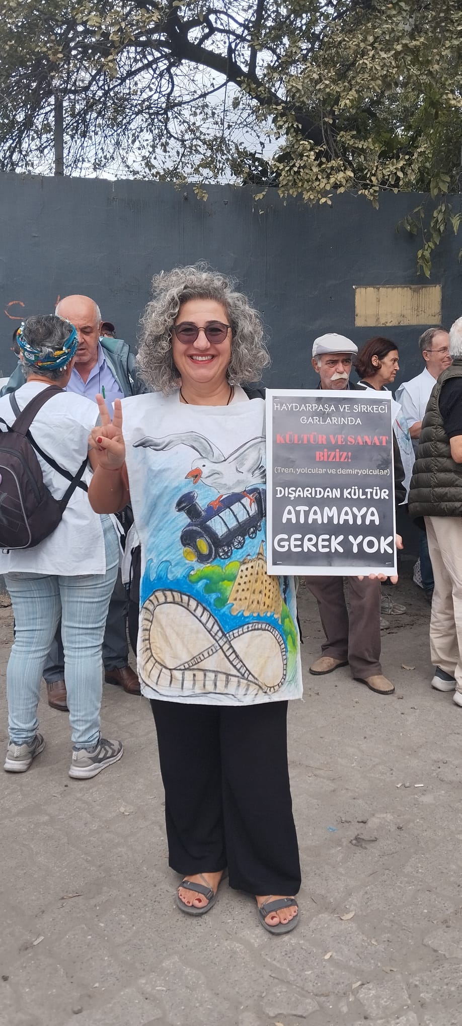 Yirmi yıldan uzundur İstanbul’daki, hatta ülkedeki demiryolu mirasının işleviyle ve iyileştirilerek yaşamasını isteyenler olarak bu eylem peşine Dayanışmanın bileşenleri ile bir forum düzenledik. Forumda tartışmaya açılan konulardan biri de, bu görselde elimde yer alan dövizdi: “Haydarpaşa ve Sirkeci Garlarında Kültür ve Sanat Biziz! (Tren, yolcular ve demiryolcular). Dışarıdan Kültür Atamaya Gerek Yok!”.