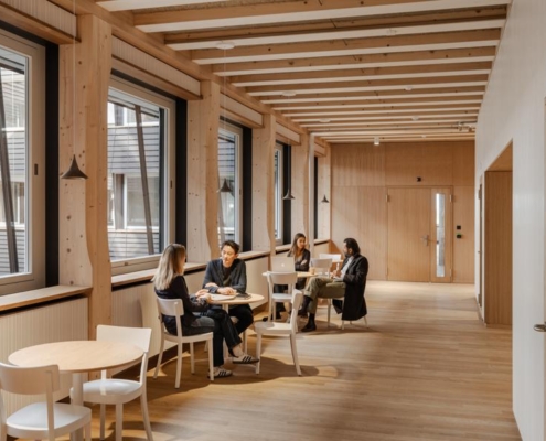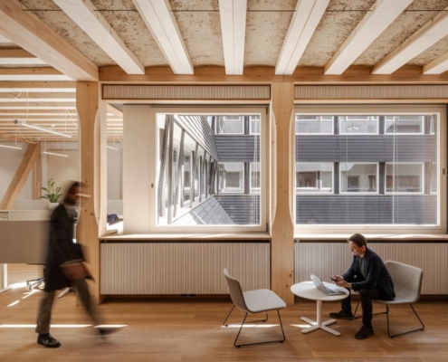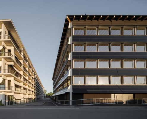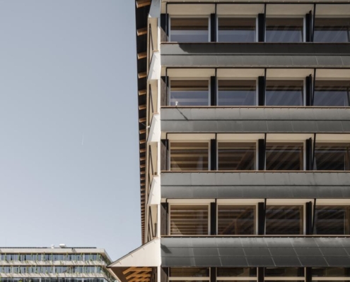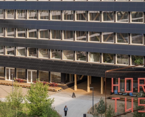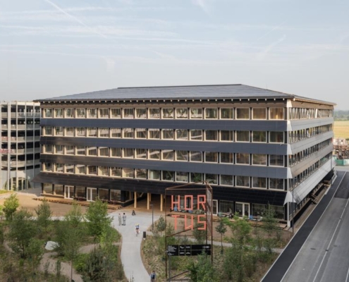 Herzog & de Meuron tarafından İsviçre’de tasarlanan Hortus, ahşap ve sıkıştırılmış kil gibi yenilenebilir malzemeleri, enerji fazlası üreten sistemi ve yeşil avlusu ile bölgede yeni bir sürdürülebilir ofis binası olarak öne çıkıyor.