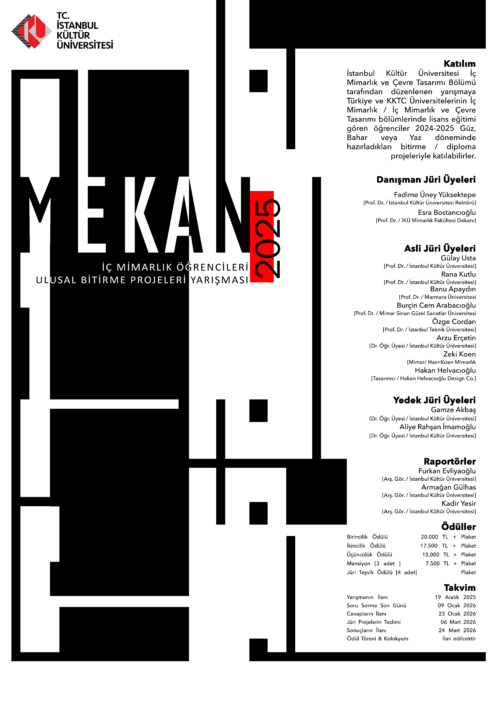 Mekan2025 İç Mimarlık Öğrencileri Ulusal Bitirme Projeleri Yarışması | İstanbul Kültür Üniversitesi