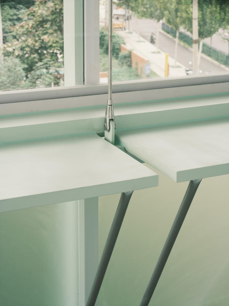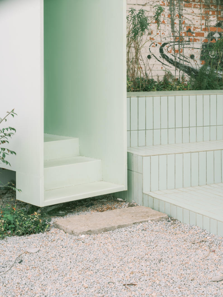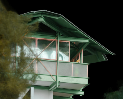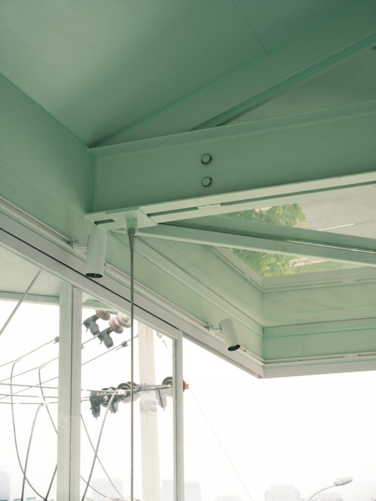 Mevcut merdiven güçlendirilerek iç mekanda bir servis çekirdeğine dönüştürülmüş; dış yüzeyi ise ziyaretçilerin mesaj bıraktığı bir duvar olarak kullanılıyor. Yapının kuzey ve güney cephelerine eklenen açık platformlar, kahve servisi ve parkla birlikte düzenlenen etkinlikler için alan sağlıyor.