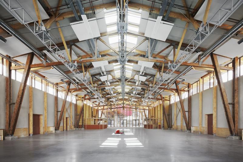 Mevcut hangar yapısına eklenen iki yan kanat ile yapı “Grande Halle” olarak yeniden tanımlanmış; yükseköğretim birimi ve idari işlevler için gerekli yeni mekanlar bu kütle içinde düzenlenmiş. Strüktür özellikle akrobasi ekipmanlarının asılabilmesine olanak tanıyacak biçimde güçlendirilmiş, böylece merkezi boşluk sirk eğitimi ve etkinlikler için yeni bir karşılaşma ve toplanma alanına dönüştürülmüş.