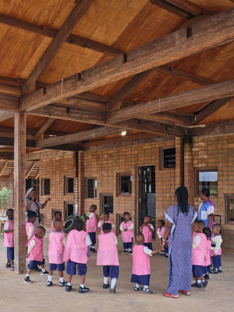 Proje, yerel üreticilerle iş birliği yaparak malzemelerin bölge içinde kullanılmasını teşvik ederken, işçilerin ahşapla çalışma becerilerini de geliştirmiş. Bu yaklaşım, yerel kalkınmaya katkı sağlamanın yanı sıra düşük emisyonlu inşaat yöntemlerinin yaygınlaşması için bir model sunuyor. African Flow, sadece bir okul binası değil, aynı zamanda inşa süreciyle de topluluğun güçlenmesini amaçlayan bir sosyal pedagoji biçimi oluşturuyor. Önümüzdeki yıllarda bu kompleksin anaokulundan lise seviyesine kadar tüm eğitim döngüsünü kapsayacak şekilde genişletilmesi planlanıyor.