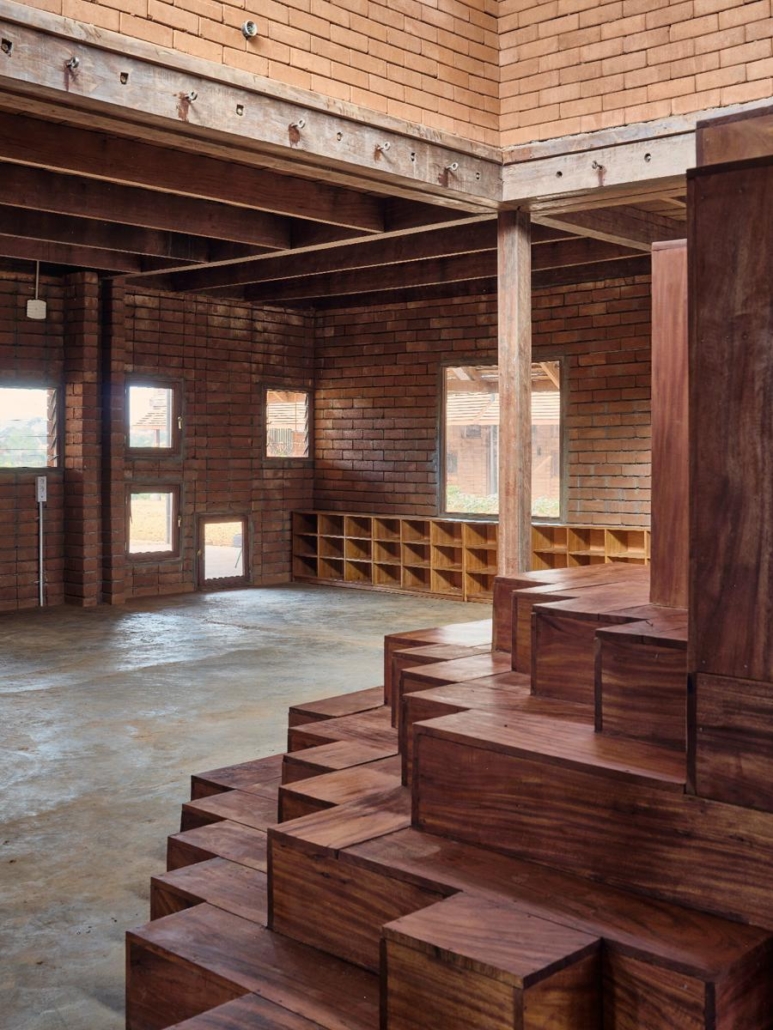 Çocuklar bu farklı alanlarda gün boyunca öğretmenleriyle toplantılar yapıyor, bilgi ve deneylerle uyarılıyor, fiziksel aktiviteler gerçekleştiriyor, ruhani alanlarda düşünüyor, malzeme laboratuvarında deneyler yapıyor ve yerel müzik aletleriyle müzik çalışmaları gerçekleştiriyorlar. Yapının tasarımında sıkıştırılmış toprak tuğlalar ve yerel ağaç türleri kullanılmış, ışık ve hava geçirgenliği sağlamak için farklı desenler tercih edilmiş. Ayrıca su ve enerji ihtiyacını karşılayan fotovoltaik panellerle kaplı ahşap bir su kulesi de komplekse entegre edilmiş.