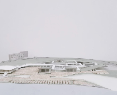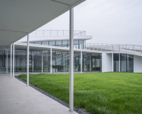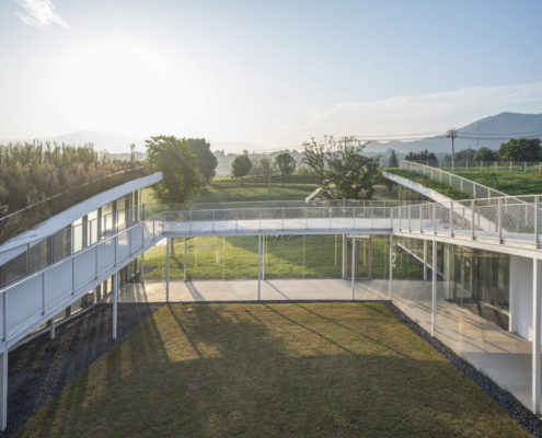 Çin’in önde gelen beyaz çay üretim bölgelerinden biri olarak bilinen Zhejiang eyaletinde yer alan proje, kasaba merkezinin yakınındaki çay tarlalarının kenarında daha önce kullanılmayan bir arsayı kaplıyor. Başlangıçta bu alan, bir Beyaz Çay Müzesi’nin yanı sıra, yakındaki Shangmakan Paleolitik arkeolojik alanı için de bir müze inşa edilmesi için planlanmış. Buna karşılık bina, çay tarlaları ve bir gölet arasında uzanan iki avlu etrafında düzenlenen yapı kümeleri olarak tasarlanmış ve mimariyi çevredeki tarım alanlarından oluşan peyzajla sorunsuz bir şekilde birleştirmek için yeşil çatılar tercih edilmiş.