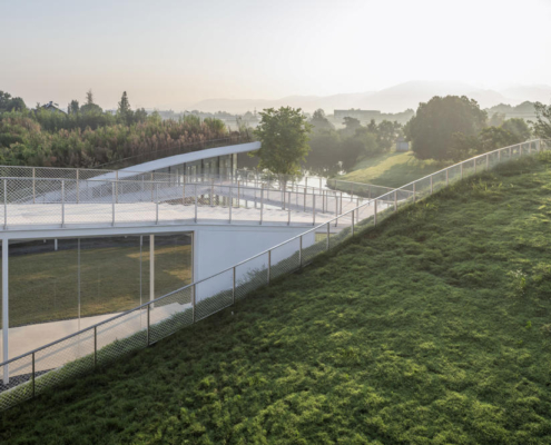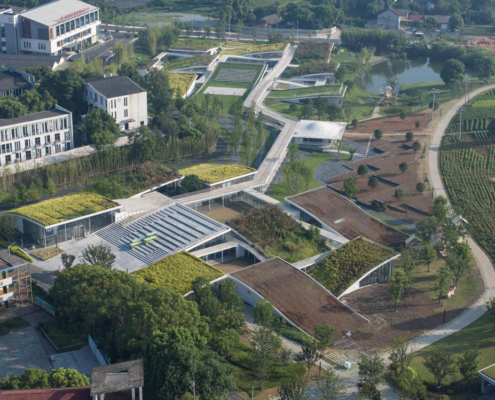 Çin’in önde gelen beyaz çay üretim bölgesi Zhejiang’da, dalgalı çay tarlalarının oluşturduğu, üretimin ritmiyle şekillenen topoğrafyadan yola çıkarak geliştirilen mimari dili ile Anji Creative & Design Center; ziyaretçileri şehrin sıkışık temposundan kırsal alana davet ediyor.