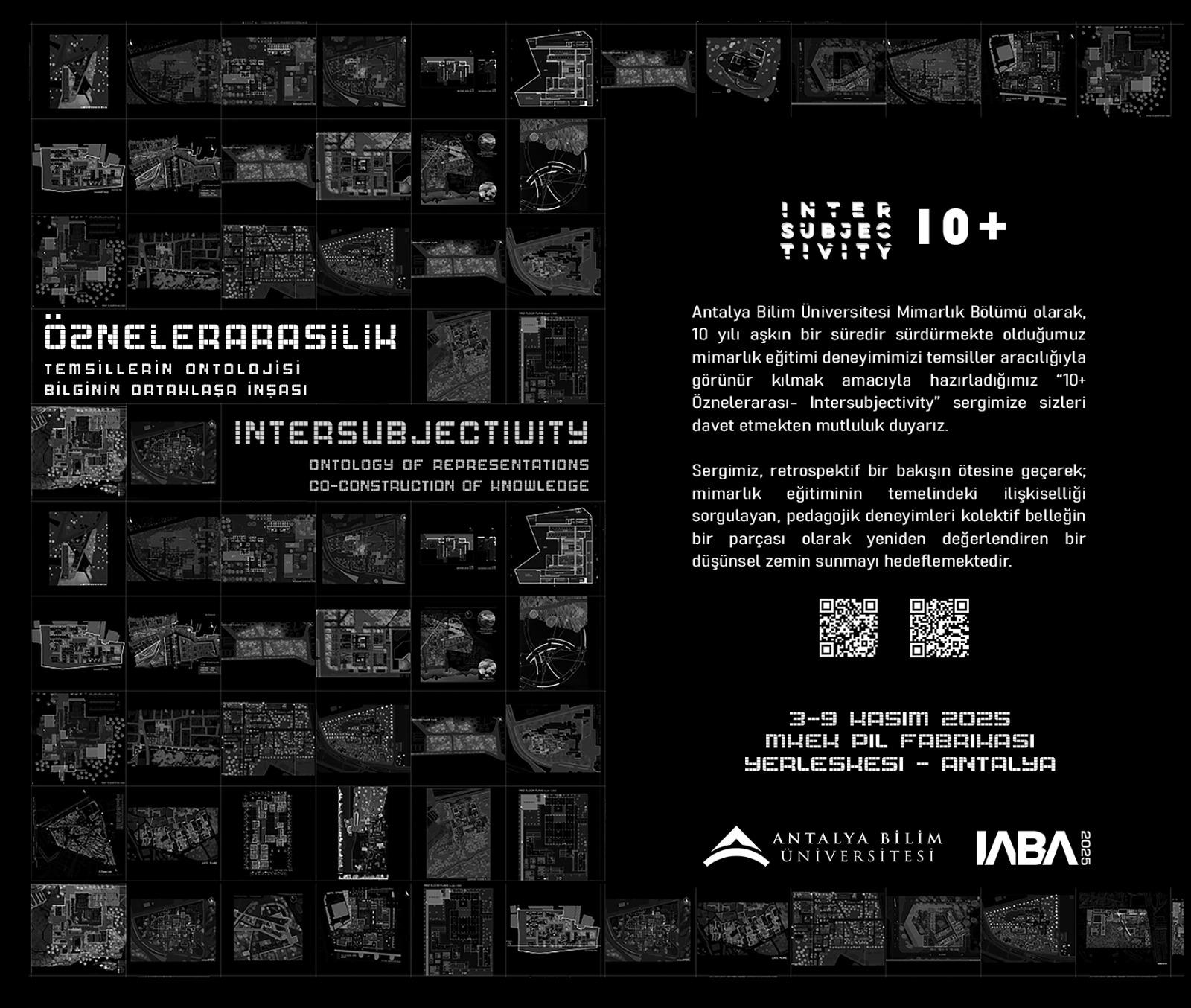 Antalya Bilim Üniversitesi Mimarlık Bölümü, on yılı aşkın eğitim-öğretim yolculuğunu küratörlüğünü Alper Gülle’nin yaptığı “Öznelerarasılık – Intersubjectivity” teması ve “Temsillerin Ontolojisi, Bilginin Ortaklaşa İnşası” başlıklı sergi ile görünür kılıyor. Mimarlık pedagojisinde temsilin rolünü merkezine alan sergi, yalnızca geçmişin belgelenmesi değil; temsiller aracılığıyla kurulan ilişkisel üretimin, kolektif belleğin ve düşünsel süreçlerin yeniden değerlendirilmesi için bir zemin oluşturuyor. Sergi Antalya Pil Fabrikası’nda, 3-9 Kasım tarihleri arasında Uluslararası Antalya Mimarlık Bienali kapsamında ziyarete açık olacak.