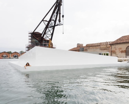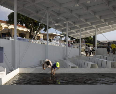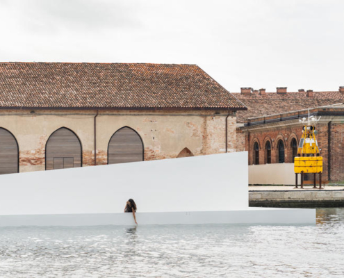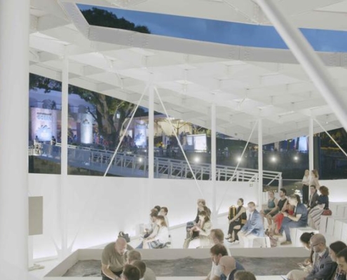 CRA–Carlo Ratti Associati ve Höweler + Yoon tarafından tasarlanan AquaPraça, değişen deniz seviyelerine uyum sağlayan yüzer yapısıyla mimarlığı iklim, su ve kamusal yaşam arasındaki ilişkiyi yeniden düşünmeye davet eden deneyimsel bir kültürel platform olarak kurgulanıyor.