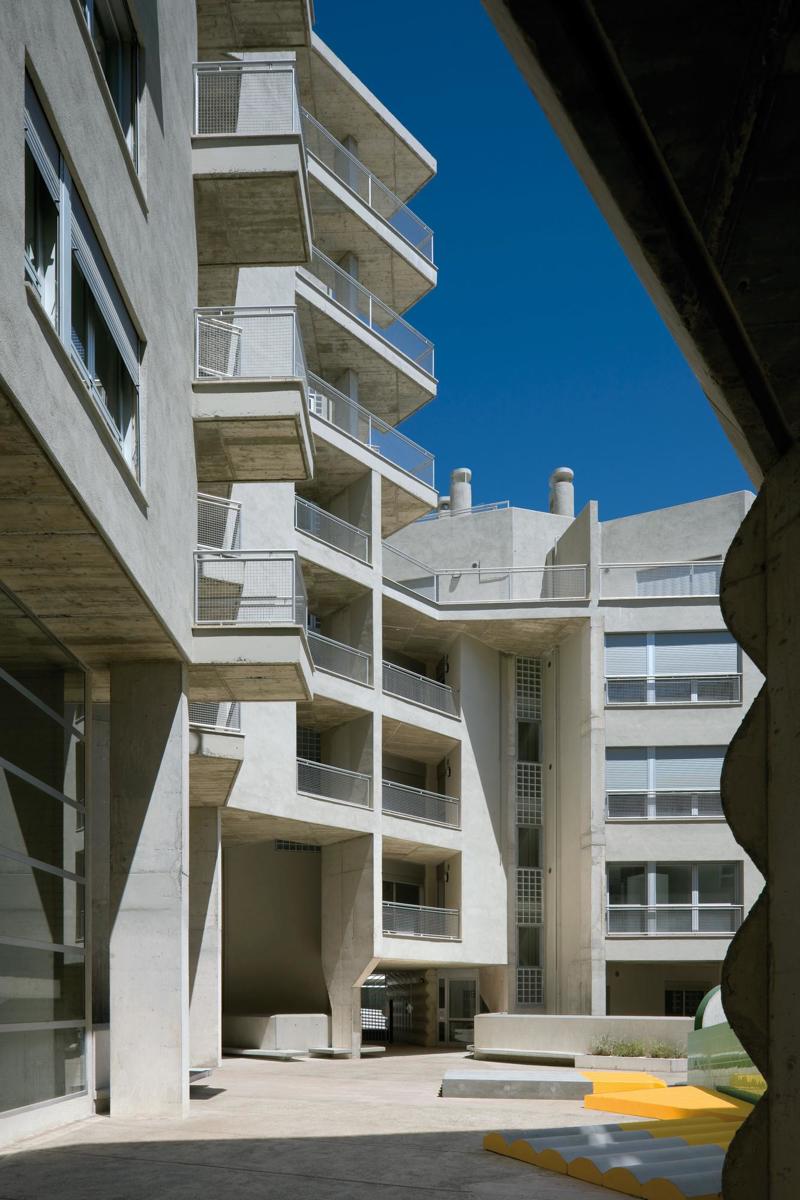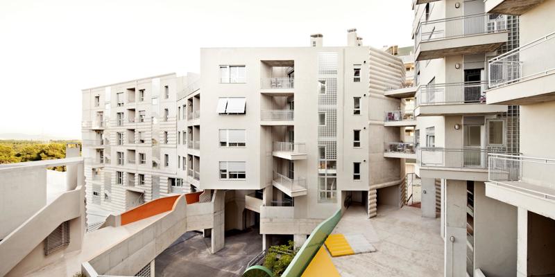 Barcelona’nın dış çeperinde, doğal peyzaj ve çam ağaçlarıyla çevrili bir bölgede konumlanan 111 sosyal konuttan oluşan yapı, konutları merkezi bir avlu etrafında örgütlüyor. Amaç, tek topluluk gibi işleyen bir mahalle oluşturmak ve sosyal ilişkileri güçlendirmek. Bu ortak avlu, farklı kültürlerden ve geçmişlerden gelen insanların etkileşim kurmasını, sosyalleşmesini teşvik eden bir buluşma alanı işlevi görüyor. Bu mahalle, sakinleri için toplum içindeki ilk sosyal yapıyı temsil ederek günümüzde yaygınlaşan izolasyon ve bireyselleşme eğilimini tersine çevirmeye yardımcı oluyor.