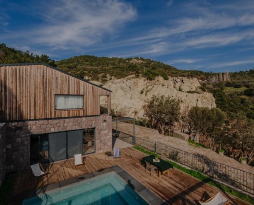 Arazi, Çanakkale’nin Ayvacık ilçesinde, Assos’un batısındaki Bademli Köyü’nün eteklerinde konumlanan, doğayla bütünleşik bir kırsal turizm yerleşkesi. Proje, beş lise arkadaşının ortak mülkiyetinde olan arazide, ortak yaşam fikri etrafında şekillenen bir otel yapısı, kayıt stüdyosu, bungalovlar, kamp alanı ve bir etkinlik alanından oluşan çok işlevli bir kompleks olarak kurgulanmış.
