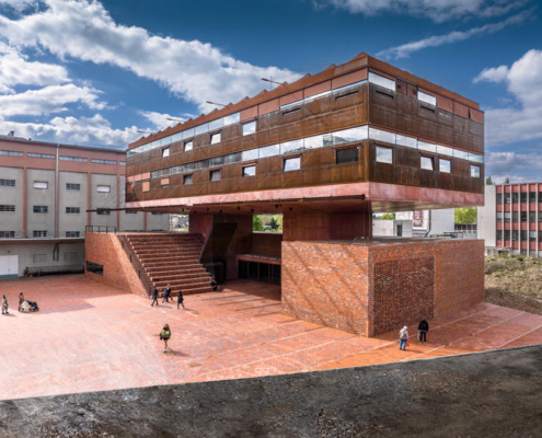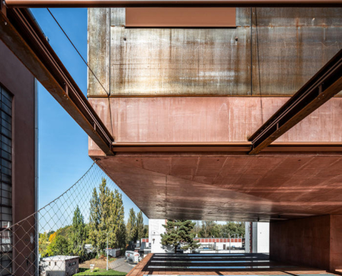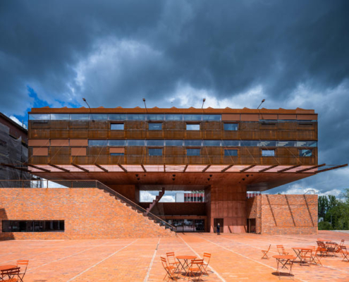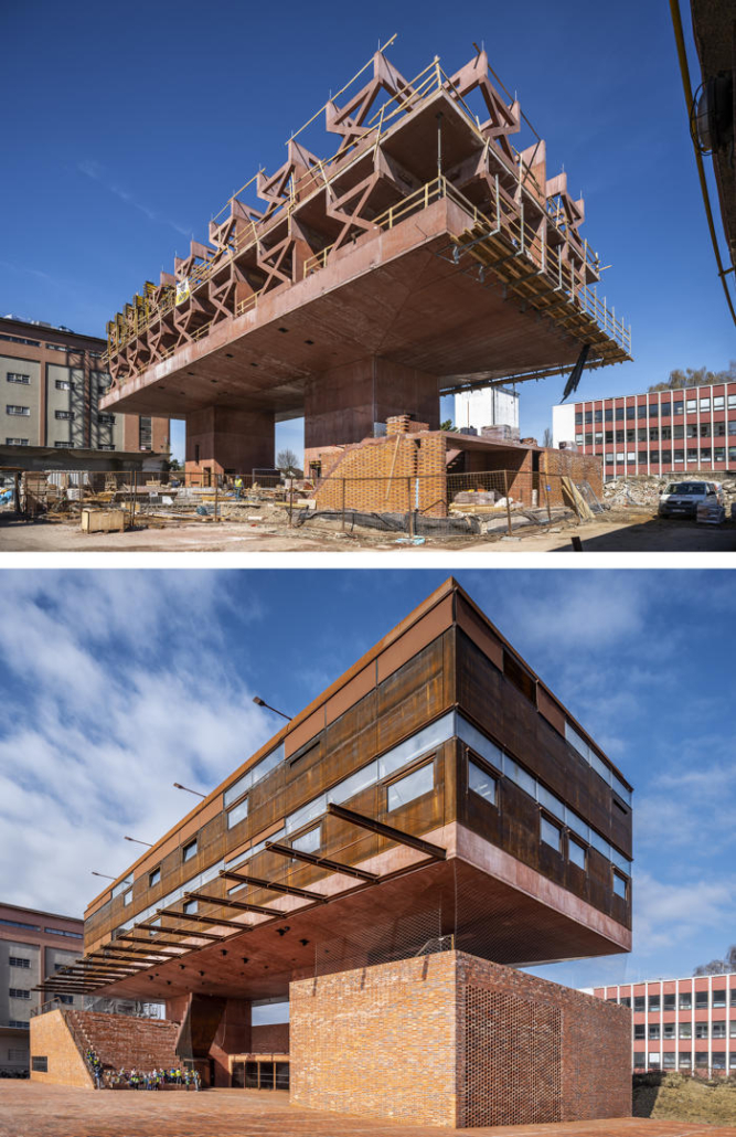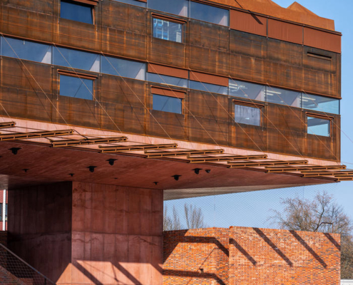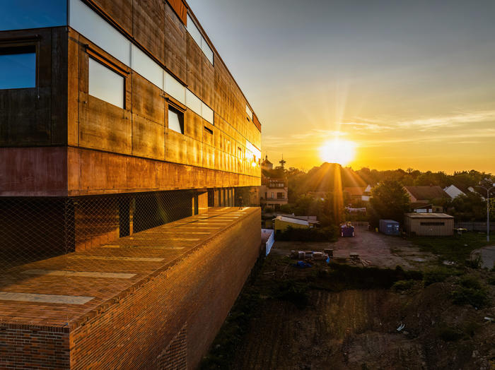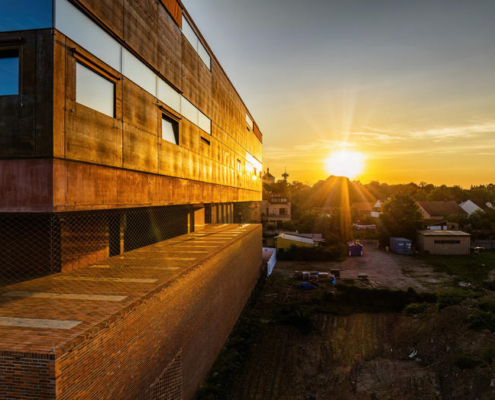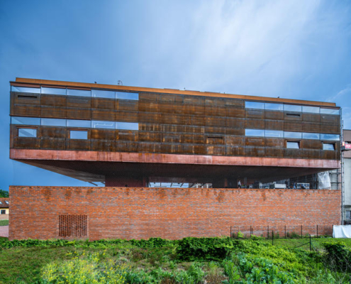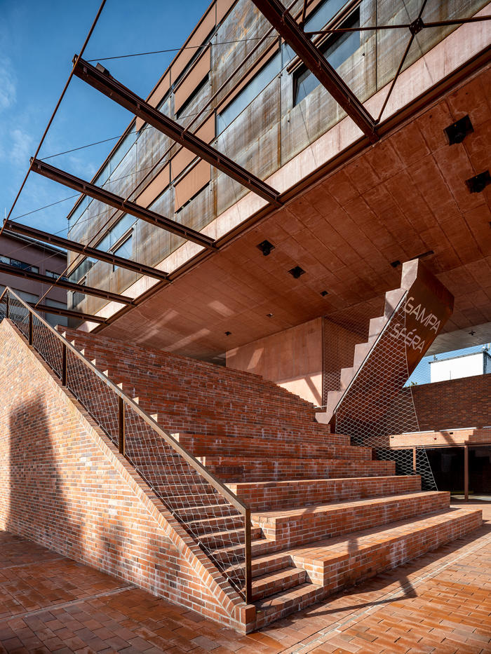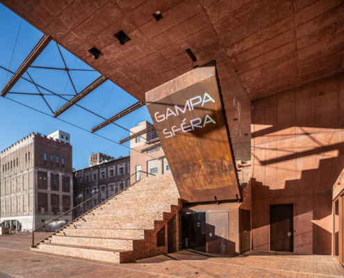 GAMPA ve Sféra’nin yeni binası, Pardubice’deki eski Winternitz Automatic Mills kompleksinin önerilen bloğunu kuzey tarafından çevreleniyor. Bunlar, belediye tarafından finanse edilen ve her biri kendi özel programına sahip iki yapı. GAMPA (Pardubice Şehri Galerisi) zemin katta yer alıyor ve Sféra (Merkezi Politeknik Atölyeleri ) ise onun üzerinde yükseliyor. Yeni binanın büyük kütlesinin bir bariyer görevi görmemesi için ikisi arasında çevreye bakan bir boşluk bırakılmış. Sféra binasının yüksekliği sayesinde üst katlarda öğrencilerin çalışması için gerekli sessizlik sağlanırken, alt kısımda yer alan GAMPA, kamusal alanla daha bütünleşik bir ilişki kuruyor.