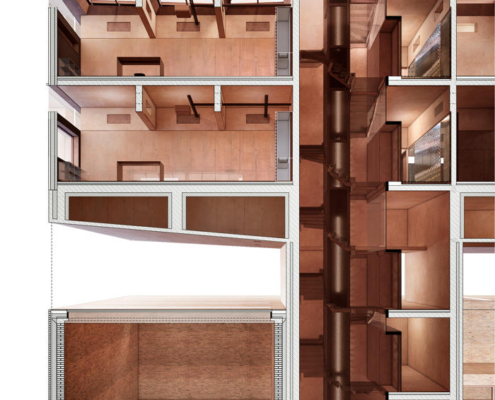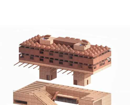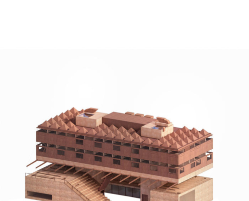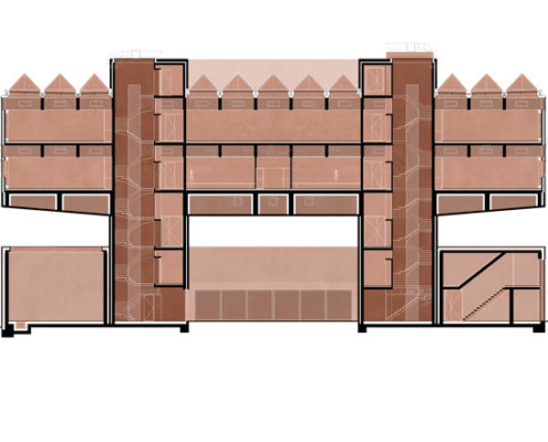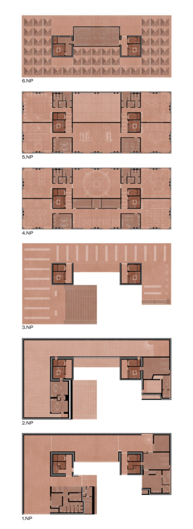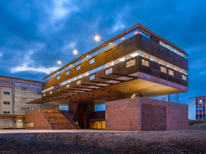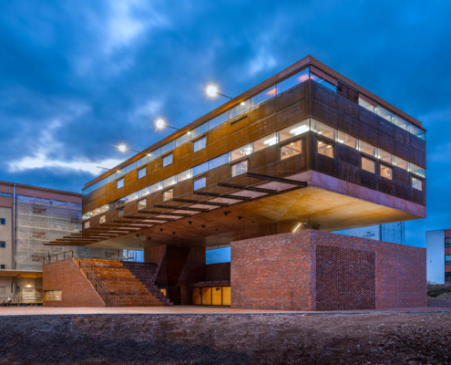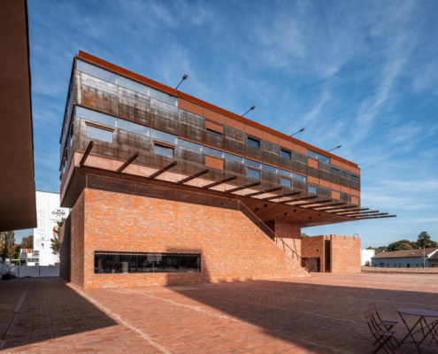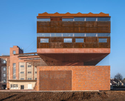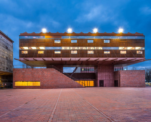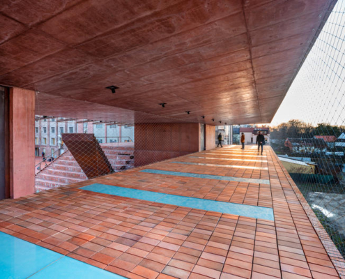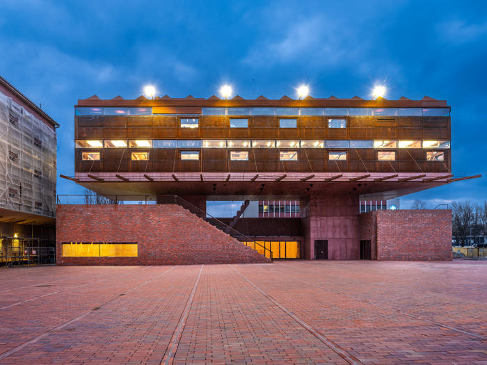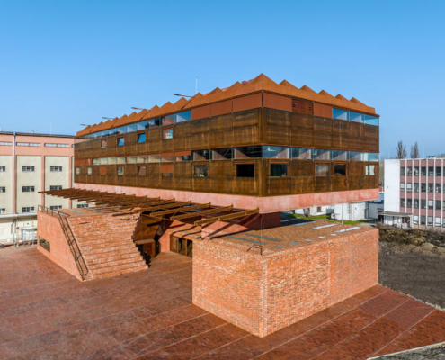GAMPA ve Sféra’nin yeni binası, Pardubice’deki eski Winternitz Automatic Mills kompleksinin önerilen bloğunu kuzey tarafından çevreleniyor. Bunlar, belediye tarafından finanse edilen ve her biri kendi özel programına sahip iki yapı. GAMPA (Pardubice Şehri Galerisi) zemin katta yer alıyor ve Sféra (Merkezi Politeknik Atölyeleri ) ise onun üzerinde yükseliyor. Yeni binanın büyük kütlesinin bir bariyer görevi görmemesi için ikisi arasında çevreye bakan bir boşluk bırakılmış. Sféra binasının yüksekliği sayesinde üst katlarda öğrencilerin çalışması için gerekli sessizlik sağlanırken, alt kısımda yer alan GAMPA, kamusal alanla daha bütünleşik bir ilişki kuruyor.