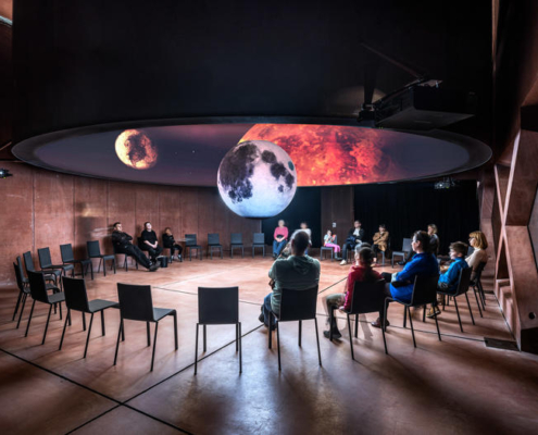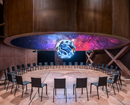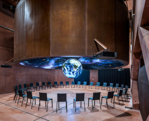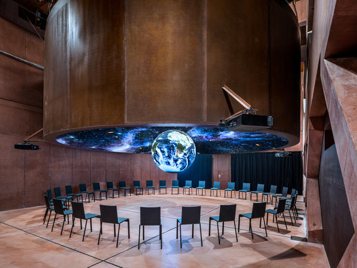 GAMPA’nın üzerinde yer alan Sféra’ya, aynı zamanda yapıya statik bir destek oluşturan iki merdivenle ulaşılabiliyor. Atölyeler öncelikle ilk ve ortaokul öğrencilerine yönelik, teknik ve doğa bilimlerinin öğretilmesi için birinci sınıf donanımlı sınıflar ve laboratuvarlar sunuyor. Resepsiyon ve vestiyerlerin bulunduğu dördüncü kattaki giriş holüne, aynı zamanda galeri girişi olarak da hizmet veren zemin kattaki ana girişten ulaşılabiliyor. Düşey sirkülasyon hem söz konusu merdivenler hem de asansörler tarafından sağlanırken biri her zaman ana giriş, diğeri ise kaçış yolu olarak kurgulanmış. İki katın her birinin yanlarında atölye veya laboratuvar olarak adlandırılan iki derslik bulunuyor. Giriş holü ve dersliklerin yanında bir personel odası yer alıyor.