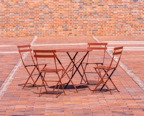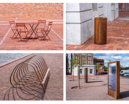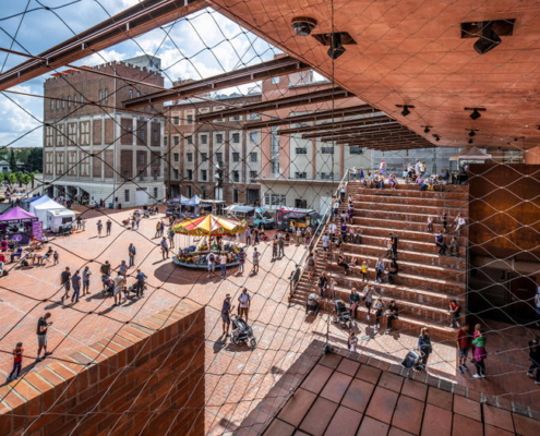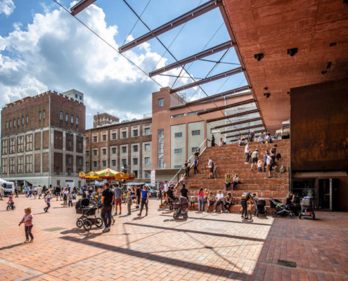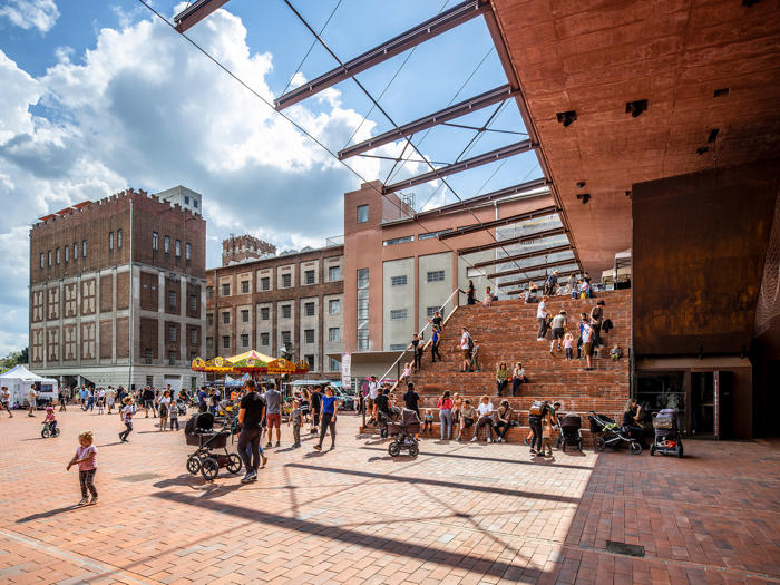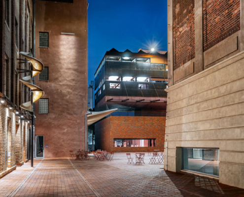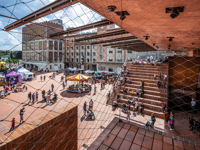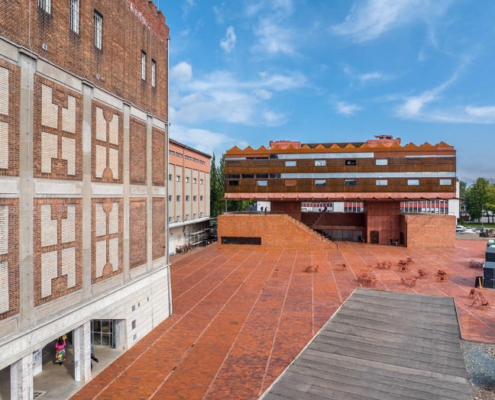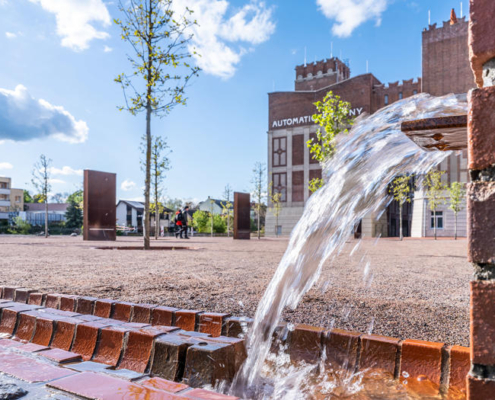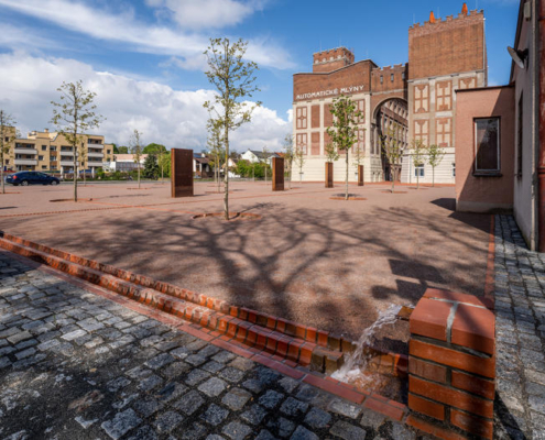 Yeni kompleksin içinde, açık hava sergileri, konserler veya tiyatro gösterileri düzenlemek için canlı bir alan olacak Mill Courtyard (Değirmen Avlusu) oluşturulmuş. Projede önerilen kamusal alanlar tamamen yaya kullanımı için tasarlanmış. Kompleksin tamamı, dört mimari stüdyo tarafından ele alınan çeşitli işlevlere sahip birçok tasarım içeriyor. Buradaki genel konseptin ayrılmaz bir parçası da renk çözümü olarak öne çıkıyor. Bu nedenle tekil planları birlikte koordine etmek önemli hale gelmiş; tüm yeni müdahaleleri Automatic Mills’in mevcut tuğla rengini takip eden tek bir renkle uyumlu hale getirmek amaçlanmış. Çeşitli işlevsel kullanımlara sahip, tekil nesnelerin çeşitliliğinin kaotik bir izlenim yaratmaması adına tuğla ve kırmızı harçtan yapılmış yürüme alanları da dahil olmak üzere tüm alanı daha bütüncül hale getirmek hedeflenmiş.