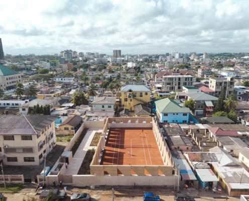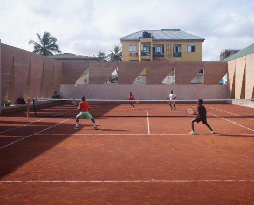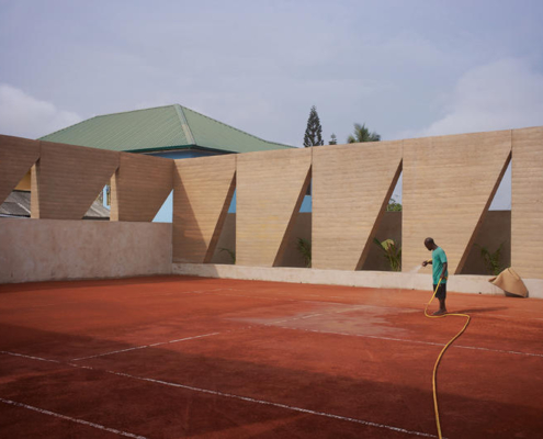 Rekreasyon alanlarına yönelik kamu yatırımlarının sınırlı olduğu ve yeşil alanların giderek azaldığı Akra’da, Backyard Community Club ortak sivil yaşam için yeni bir model öneriyor; tenis kortu merkezli bir topluluk spor tesisi olarak, tasarımın kapsayıcı, sürdürülebilir ve sosyal dönüşüm sağlayan ortamlar yaratabileceğini gösteriyor. DeRoche Projects tarafından tasarlanan tesis, Gana’da ön döküm sıkıştırılmış toprak sistemi kullanılan ilk proje olarak öne çıkıyor. Stüdyo tarafından geliştirilen bu yenilikçi yöntem, geleneksel bir malzemeyi çağdaş ve ölçeklenebilir bir yapı sistemi olarak yeniden ele alıyor. Hem yerel bir simge hem de tekrarlanabilir bir prototip olarak kurgulanan Backyard, tasarımın sivil kalite, çevresel sorumluluk ve kültürel kimlik gibi acil meselelerle nasıl ilişki kurabildiğini ortaya koyuyor.