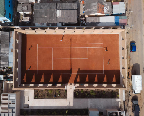 Tenis kortu etrafında kurgulanan, DeRoche Projects tasarımı Backyard Community Club, spor aracılığıyla eğitim, üretim ve topluluk yaşamını yeniden tanımlıyor.
