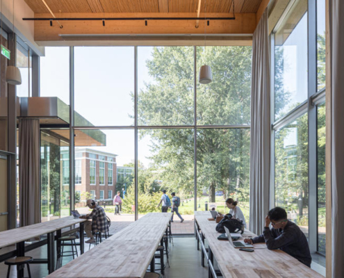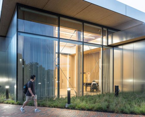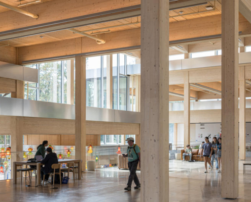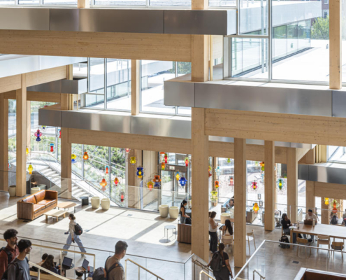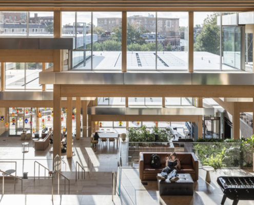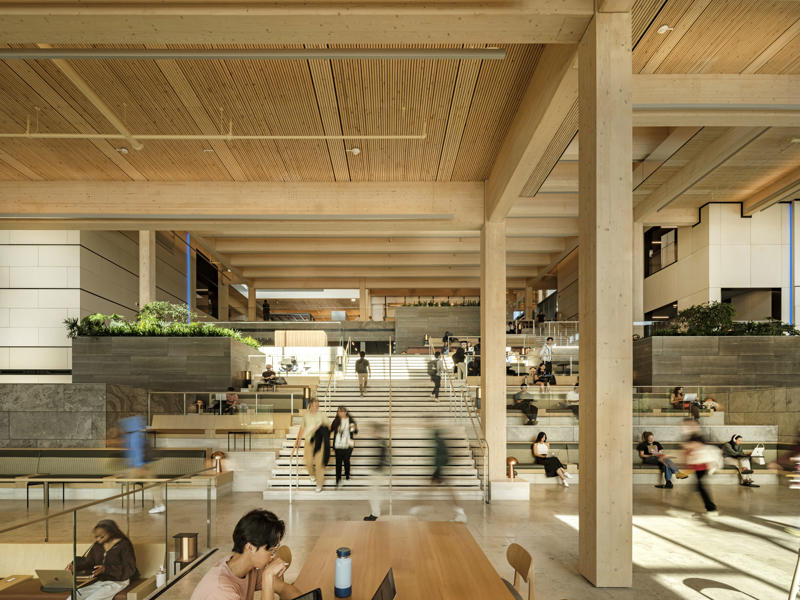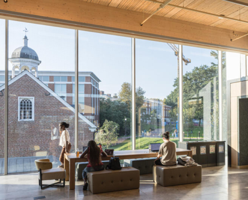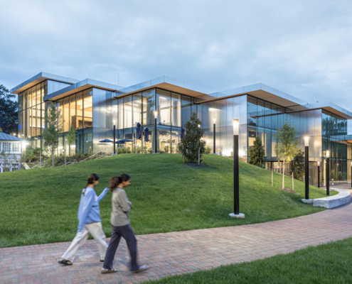 BIG – Bjarke Ingels Group tasarımı Bloomberg Student Center, kademeli ahşap kütleleri ve topoğrafyaya yerleşen geçirgen yapı sistemi ile Johns Hopkins kampüsünde yeni bir kamusal merkez oluşturuyor.