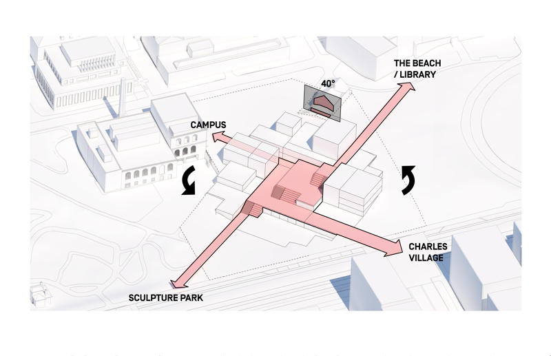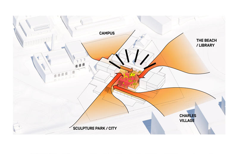 Bjarke Ingels, projeyi “öğrencilerin bir araya geldiği, yaratıcılık ve paylaşımın doğrudan mekansal organizasyona yansıdığı dört mevsimlik bir sosyal manzara” olarak tanımlıyor. Bloomberg Student Center, Johns Hopkins Üniversitesi’nde dağınık halde bulunan öğrenci etkinliklerini tek çatı altında toplayarak, kampüs yaşamını yeniden tanımlayan çağdaş bir merkez oluşturuyor.