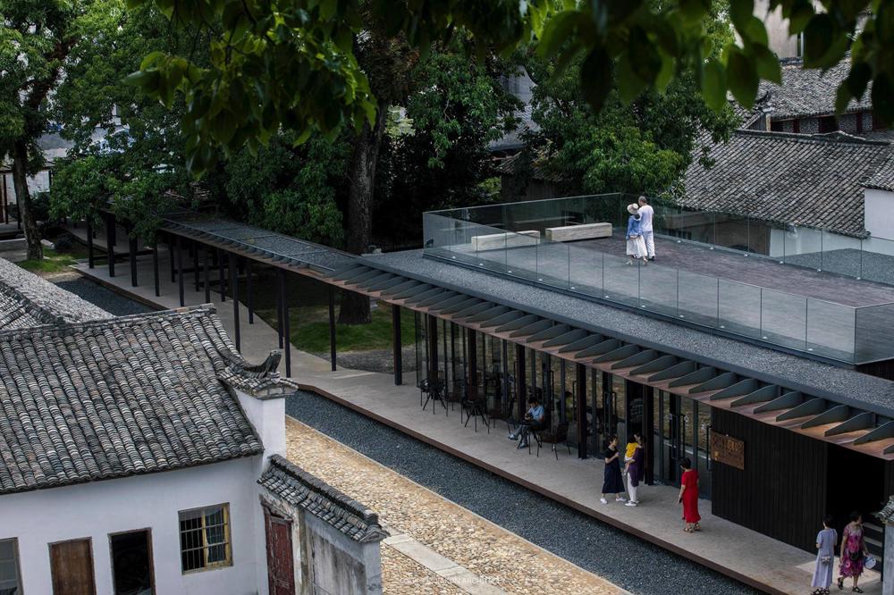 Müze, bitişiğindeki mahallede yer alan konutlara yakın bir ölçeği benimseyerek tarihi Shuijingfang kültürel bölgesiyle uyumlu bir şekilde bütünleşiyor. Ahşap çerçeveli eski atölyede geleneksel damıtma yöntemleri sürdürülürken, modern teknikler yeni inşa edilen beton tesislerde uygulanıyor. Yeni binaların çatı tasarımı, eski atölyenin tavan pencerelerini yeniden yorumlayarak, mayalanma süreci için hayati önem taşıyan havalandırma ve aydınlatma koşullarını sağlıyor. Ziyaretçi rotası boyunca değişimli olarak düzenlenen avlular ve sergi salonları, iç ve dış mekanlar arasında akıcı bir geçiş sağlayarak müze deneyimini zenginleştiriyor. Eski ve yeni yapılar bir araya gelerek Shuijingfang Müzesi’ni koruma, sergileme, üretim ve etkileşimi birleştiren “yaşayan” bir kültürel miras alanı haline getiriyor. Cephelerde modern ve çevre dostu malzemeler olan geri dönüştürülmüş tuğlalar ve bambu kompozit kullanılmasının yanında, geleneksel duyarlılığı yansıtan çağdaş bir mimari ifade yer alıyor.