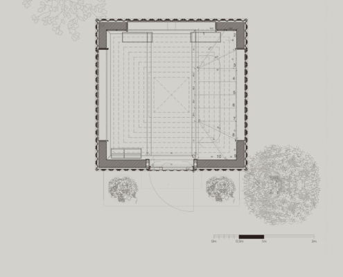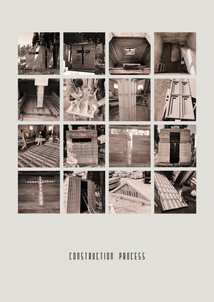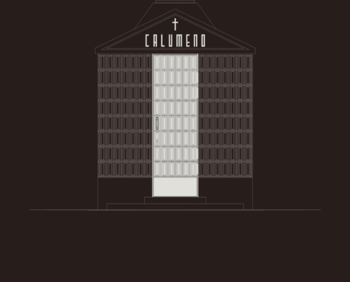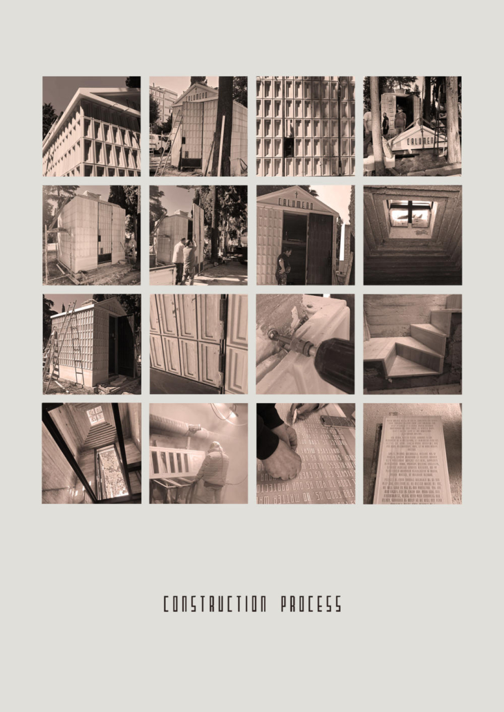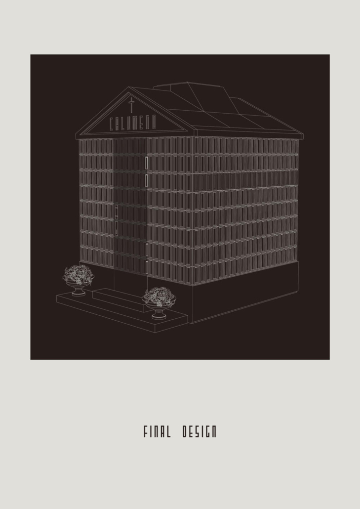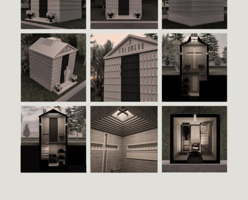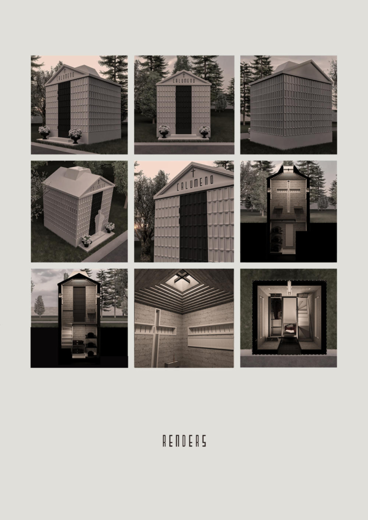 Feriköy Mezarlığı’ndaki geleneksel aile mozolelerinde, tabutlar yeraltı kotunda muhafaza ediliyor. Ancak bu alanlar karanlık, dar ve ziyaretçiler için erişimi zor mekanlar. Bernard Tschumi’nin Akropol Müzesi’ndeki cam döşeme uygulamalarından ilham alınarak mozolenin toprak altı kotu cam bir yüzey aracılığıyla görünür kılınmış ve yeraltına inişin mekansal ve duygusal deneyimini kolaylaştıran bir çözüm sunulmuş. Calumeno Mozolesi, geleneksel anıtsal mimarlık ile çağdaş üretim tekniklerini buluşturan bir tasarım yaklaşımı sergiliyor. Mekan, malzeme ve ışık ilişkileri üzerinden şekillenen bu yapı, zamanın ötesine uzanan bir hafıza mekanı olarak kurgulanmış.