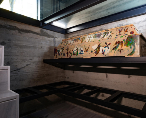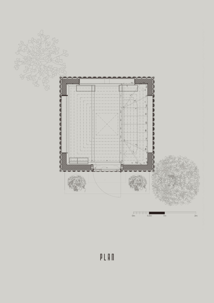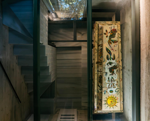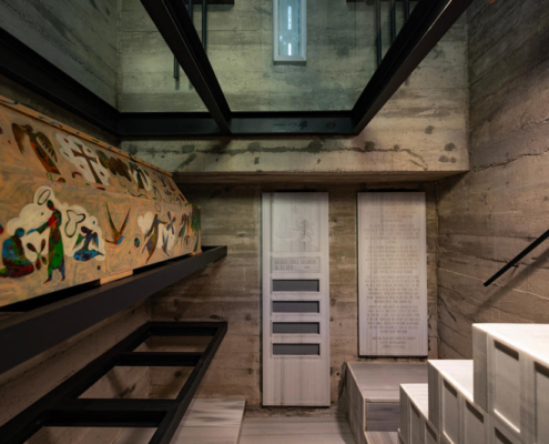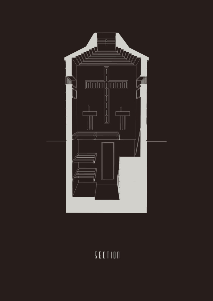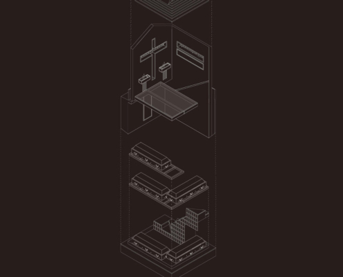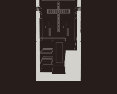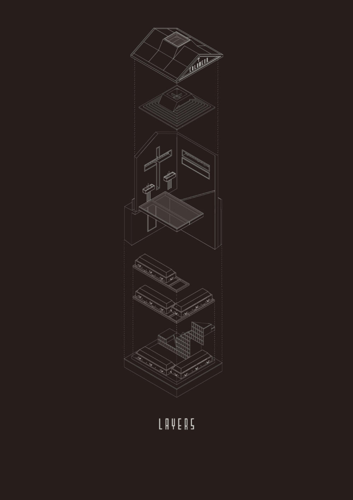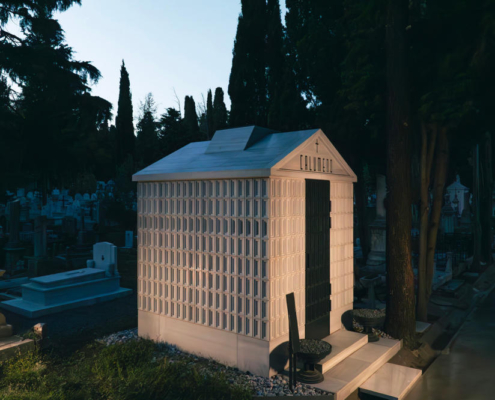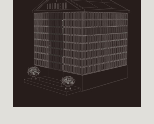 Feriköy Mezarlığı’ndaki geleneksel aile mozolelerinde, tabutlar yeraltı kotunda muhafaza ediliyor. Ancak bu alanlar karanlık, dar ve ziyaretçiler için erişimi zor mekanlar. Bernard Tschumi’nin Akropol Müzesi’ndeki cam döşeme uygulamalarından ilham alınarak mozolenin toprak altı kotu cam bir yüzey aracılığıyla görünür kılınmış ve yeraltına inişin mekansal ve duygusal deneyimini kolaylaştıran bir çözüm sunulmuş. Calumeno Mozolesi, geleneksel anıtsal mimarlık ile çağdaş üretim tekniklerini buluşturan bir tasarım yaklaşımı sergiliyor. Mekan, malzeme ve ışık ilişkileri üzerinden şekillenen bu yapı, zamanın ötesine uzanan bir hafıza mekanı olarak kurgulanmış.