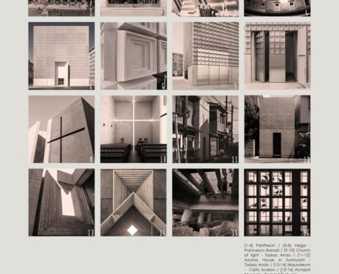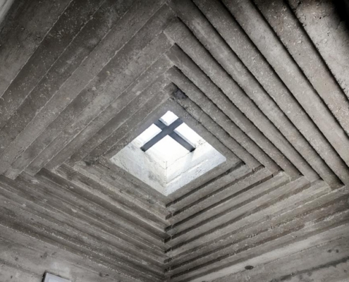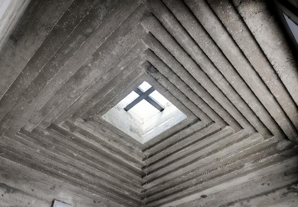 Mozolenin tasarımında belirleyici olan dört temel kavramsal yaklaşım bulunuyor. Bunlardan ilki, dış cephede kullanılan kaset modülleri. Hristiyan kültürü bağlamında evrensel bir görsel referans oluşturmayı amaçlayan bu modüller, doğrudan bir dini figüratif temsil yerine, Pantheon’un iç kaset sistemine dayanan strüktürel bir hafiflik prensibiyle geliştirilmiş. Kasetlerin merkezine doğru gerçekleştirilen kademeli oyma işlemi, günün farklı saatlerinde ışığın yüzeyde oluşturduğu gölge derinlikleriyle mekansal algıyı zenginleştiriyor. Aynı zamanda, bu keskin ızgara düzeni, ölümün kaçınılmaz bir olgu olduğunu hatırlatan bir zamansal metafor olarak değerlendirilmiş.