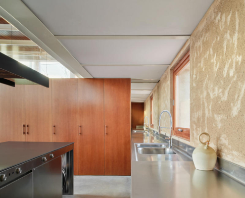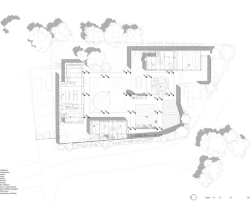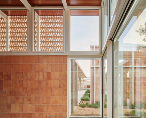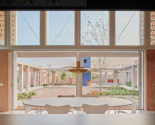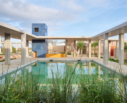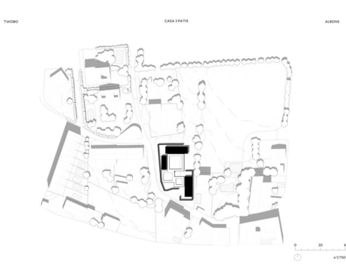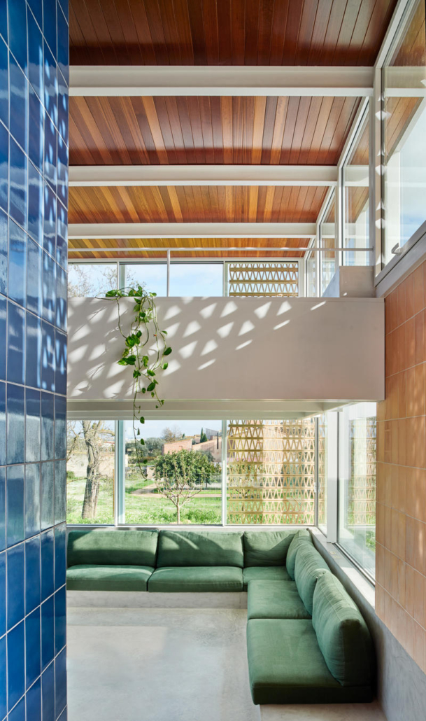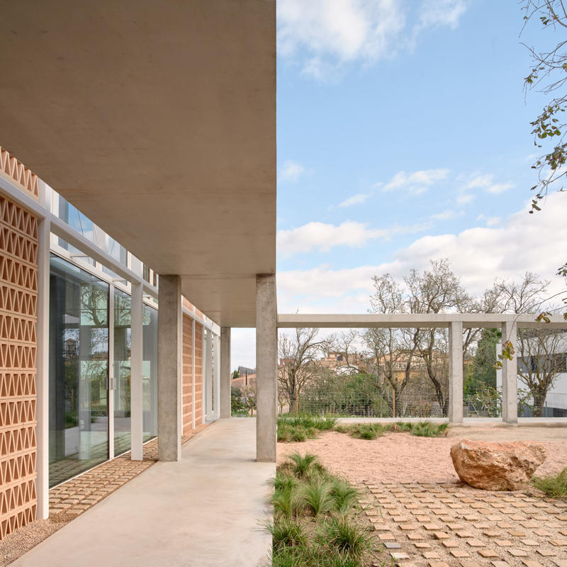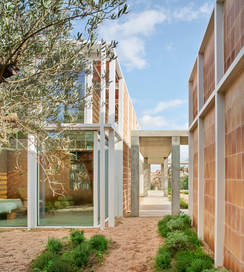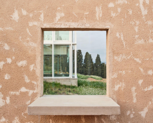 Girona’nın kuzeyindeki Albons kasabasında yer alan bu 300 m²’lik ev, yakındaki Empúries antik kentinin klasik villalarından ilham alarak; çevre duvarı, merkezi bir gökyüzüne açık avlusu ve bu avlu etrafında kurgulanan yaşam alanlarıyla zamansız Akdeniz tipolojisine saygı duruşunda bulunuyor. Kabaca sıvanmış iki duvar, tüm arsayı sararak yapıyı sert kuzey rüzgarlarından korurken, dışarıdan gelen bakışlara karşı da mahremiyet sağlıyor. Ancak bu duvarların yönelimi, iç mekanda açıklığa davet sunarak manzaraları çerçeveliyor, korunaklılık hissi yaratıyor ve iç-dış alanlar arasında uyumlu bir geçiş sağlıyor. Duvarların içindeki boşluklar ise arsa boyunca görüş çizgileri oluşturarak mekansal devamlılığı destekliyor. Mimarların ifadesine göre bu durum, pencereler ve açıklıklar konusunda takıntılı olan Le Corbusier ile Sigurd Lewerentz’e bir gönderme taşıyor.