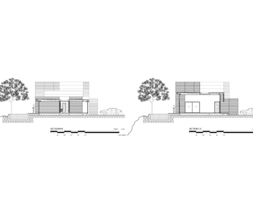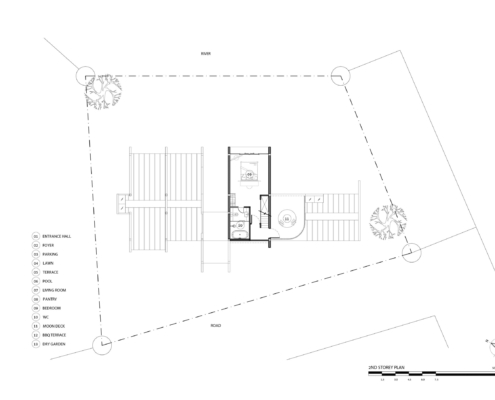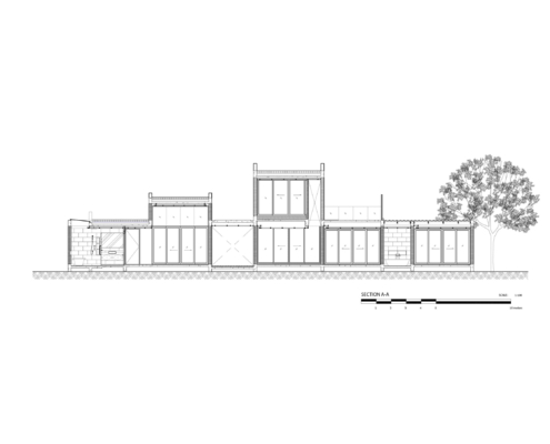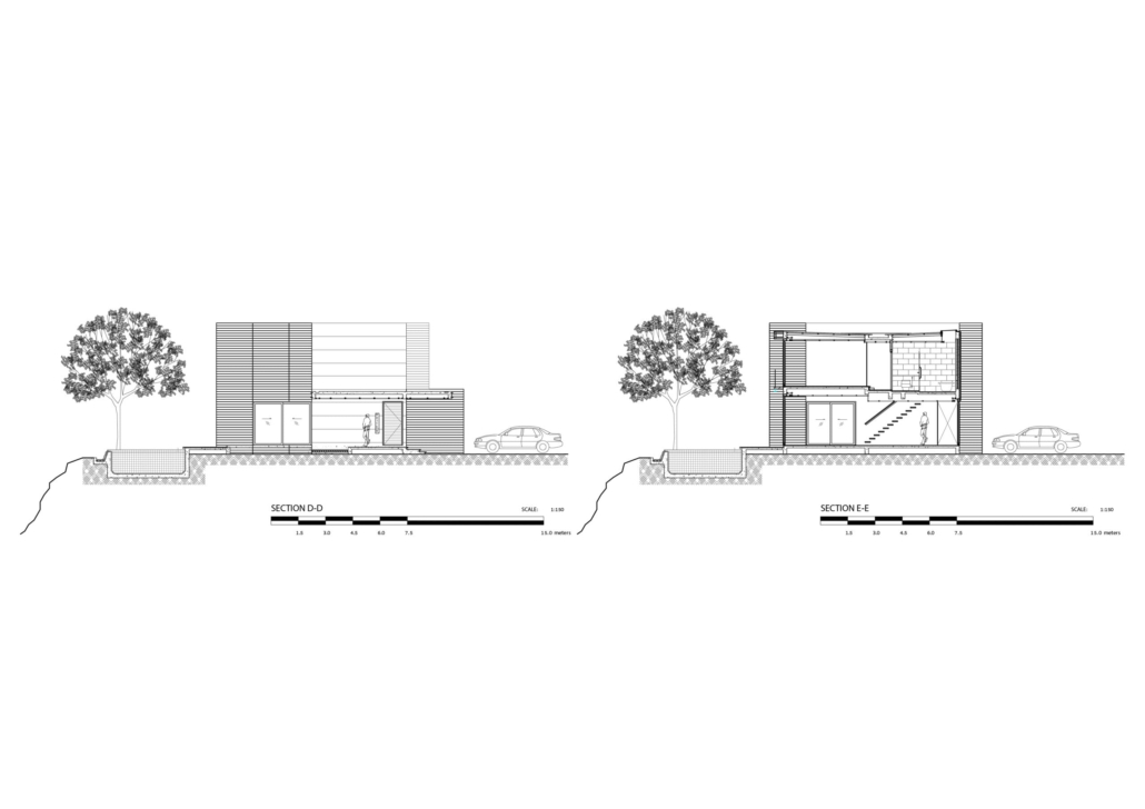 Arsanın önündeki işlek ve gürültülü yol ile arka bölümünde yer alan ağaçlık tepe ve nehir, mekanların arka cepheye açılmasına ve yapının, caddeye bakan cephesinde daha sağır bir karakter sergilemesine sebep olmuş.