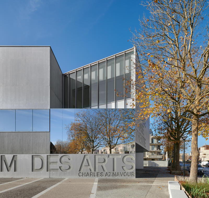 Montigny-le-Bretonneux’de konumlanan ve Dominique Coulon & Associés tarafından tasarlanan müzik, tiyatro ve dans akademisi olarak hizmet veren Charles Aznavour Konservatuvarı, üçgen arsaya uyum sağlayan geometrisi, ışıkla değişen cam cepheleri ve kültürel kimliğini öne çıkaran çağdaş kurgusuyla öne çıkıyor.