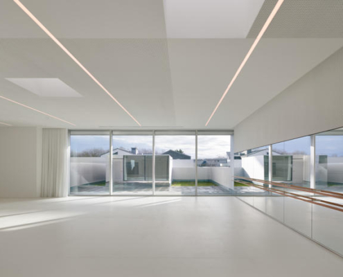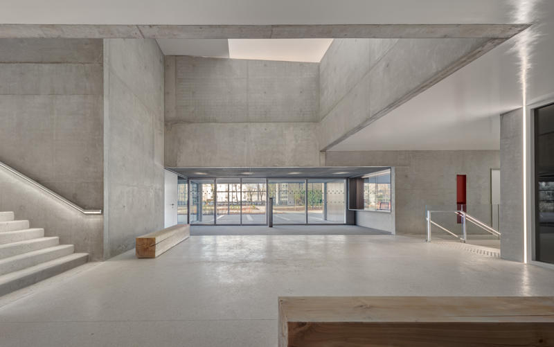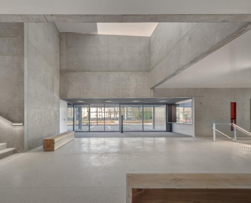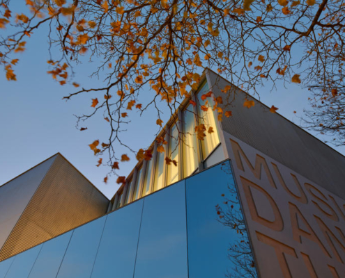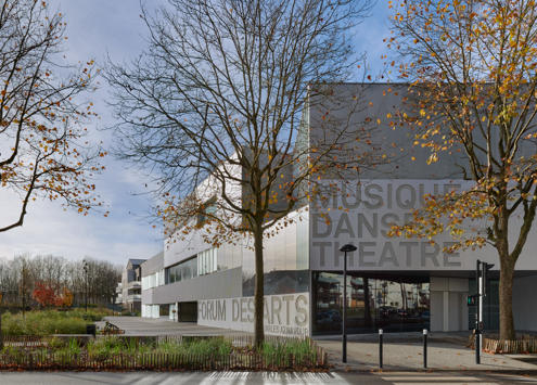 Montigny-le-Bretonneux’nun yeni bölgesindeki müzik, tiyatro ve dans akademisi binası üçgen bir arsada yer alıyor. Binanın manzarası, Ricardo Bofill’in 1985 yılında tasarladığı ünlü Les Arcades du Lac apartmanına doğru açılıyor. Kompakt bina, caddenin daha dik açılı ve nitelikli manzarasını seyretmek için güneye dönük olarak konumlandırılmış. Yapı, dans stüdyosunun ölçeğini algılatmak için binadan ayrılmış gibi görünüyor; stüdyo, yola paralel olacak şekilde yönleniyor. Farklı formlar çarpışarak kompleksin geometrisini yansıtıyor. Bu formlar, kasabanın manzarasını ve iç mekanın net görüntüsünü sunuyor.
