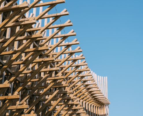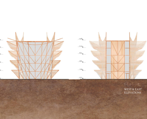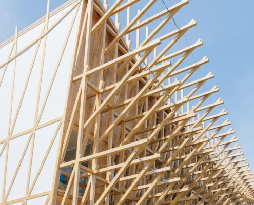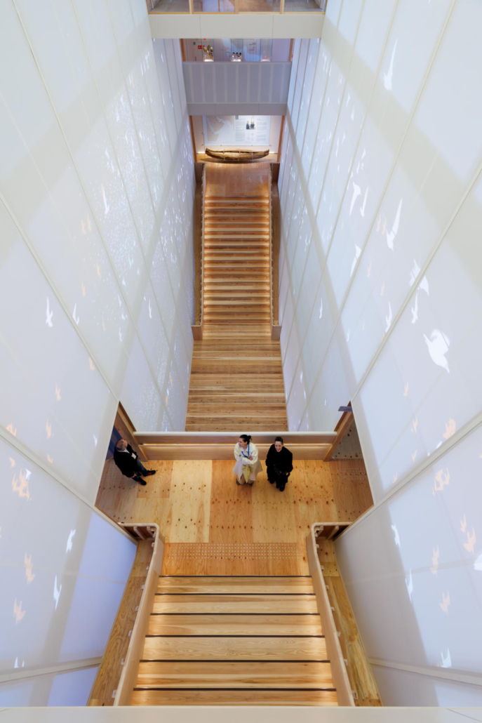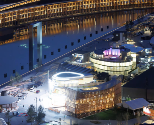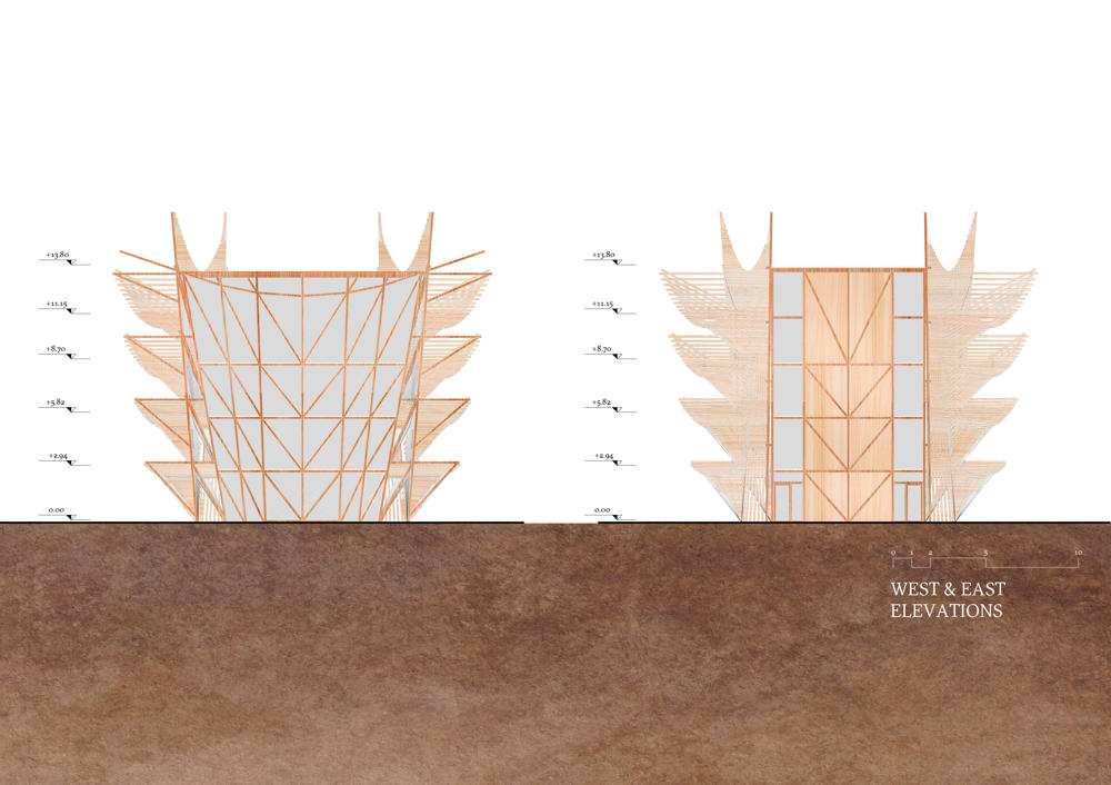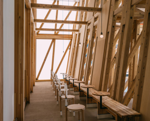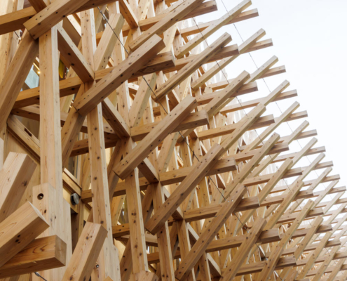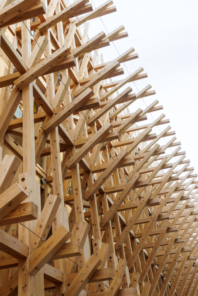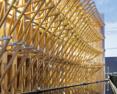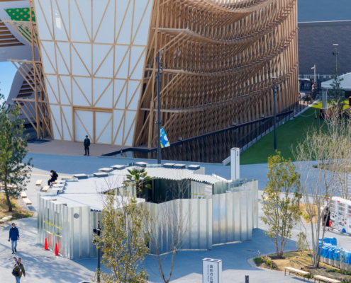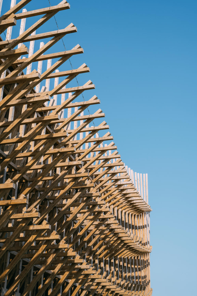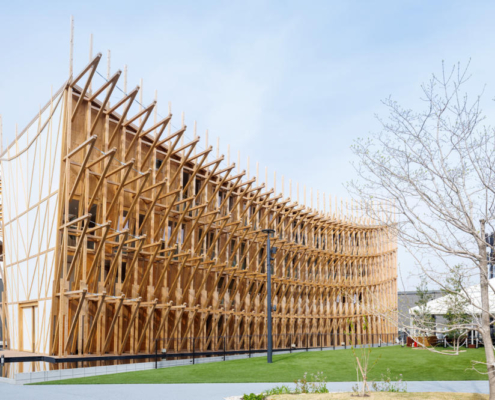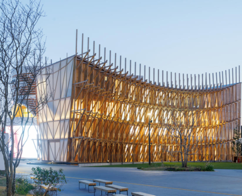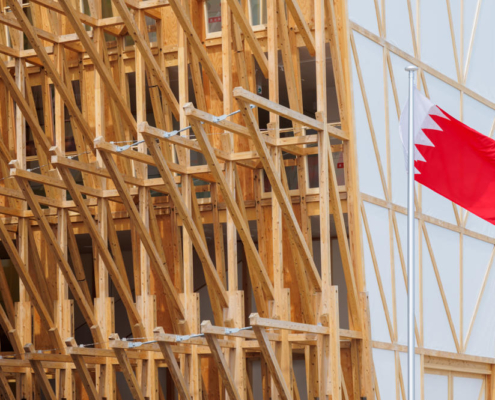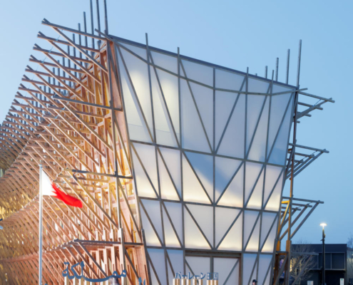 Osaka’da yer alan Expo 2025 için Lina Ghotmeh tarafından tasarlanan Bahreyn Krallığı pavyonu, geleneksel dhow yapımından ilhamla Japon doğrama tekniklerini yeniden yorumluyor.