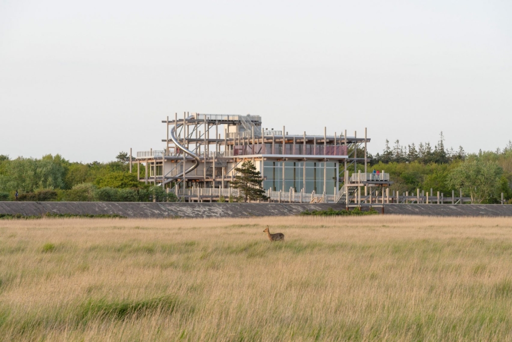 Deniz kıyısında bir gezinti yolunda yer alan Holzer Kobler Architekturen tasarımı Erlebnis-Hus, sadece bir ziyaretçi merkezi değil; oyunla mimariyi, sosyal alanla manzarayı birleştiren katmanlı bir deneyim mekanı. Yapı, hem geleneksel kazık yapılarından hem de Japonya’daki 1980’ler Metabolizm mimarlık hareketinden ilham alıyor. Ahşap bir ızgara sistemi içine yapıda kullanıcı hareketi desteklenirken kıyı mimarisinin hem oyun hem kamusal yaşamla iç içe geçtiği katılımcı bir deneyim sunuluyor.