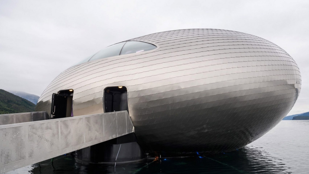 Kvorning Design tasarımı “Salmon Eye”, sürdürülebilir su ürünleri yetiştiriciliği konusunda farkındalık yaratmayı hedefleyen bir ziyaretçi merkezi. İsmini ve karakteristik oval formunu somon balığının iri, yuvarlak gözlerinden alan yapının cephesinde 9.500 adet paslanmaz çelik plaka bulunuyor. Norveç’in ikinci en büyük fiyordu olan Hardangerfjord’un sularında konumlanan çok amaçlı yapı ziyaretçilere deniz hayatını deneyimletmeyi hedefliyor. Salmon Eye, yalnızca bir mimari yapı değil; bilgi, estetik ve çevresel farkındalığın iç içe geçtiği etkileyici bir anlatı mekanı olarak öne çıkıyor.