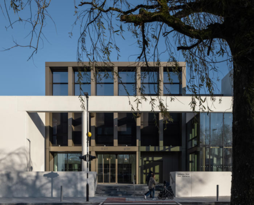 Keith Williams Architects tarafından tasarlanan DeValera Library & Súil Art Gallery, bulunduğu bölgenin sanat kültürü için önemli bir kültürel kompleks oluşturuyor; şehrin kamusal ağları ile bütünleşen tasarım kararları yapının kent ile kurduğu bağı güçlendiriyor.