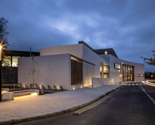 Yeni birimler olan DeValera Kütüphanesi ve Súil Sanat Galerisi’nin mevcut Glór Tiyatrosu’na bitişik şekilde yerleştirilmesiyle, Keith Williams Architects üç ana sanat disiplinini, görsel sanatlar, edebi sanatlar ve sahne sanatları, bir araya getiren yeni bir kültürel merkez oluşturmuş. Bu kompleks, şehre, ilçeye ve bölgeye hizmet ediyor. Kütüphane, sanat galerisi ve Glór, yeni inşa edilmiş çift yükseklikte sütunlu bir revak ve ana girişle birbirine bağlanmış. Bu düzenleme, kompleks içindeki sanat üçlemesi arasında maksimum bağlantı sağlıyor ve Manastır Parkı’nın başında yer alarak, tarihi şehir merkezinden gelen yollarla doğrudan ilişki kuran kültürel kompleksi şekillendiriyor.