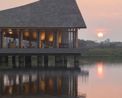 Rezervuar kıyısındaki bozulmayı en aza indirmek için, yapı platformu yükseltilmiş bir strüktür olarak tasarlanmış ve altına HVAC sistemleri ile su ve elektrik hatlarını barındırmak üzere elli beş santimetrelik bir boşluk bırakılmış. Platform kotu, rezervuarın tarihsel olarak en yüksek su seviyesinin yirmi santimetre üzerine çıkarılarak taşkın güvenliği sağlanmış. Ana yapı, çatı eğimli çerçeve sistemleriyle birlikte çelik cıvata bağlantılı ahşap karkas olarak tasarlanmış. Çatının ana strüktürel elemanlarını dört hiperbolik ana kiriş oluştururken, bunları eşit aralıklarla yerleştirilen ikincil kirişler tamamlamış. Kavisli form, set yolunun kıvrımlarını takip ederek doğal araziye uyum sağlamış ve yapıya kendi kendine strüktürel stabilite kazandırmış. İç mekan, kolon kullanılmadan tasarlandığı için mekansal kesintiler en aza indirilmiş.