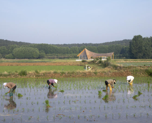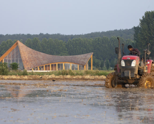 Primary Architects tarafından Çin’in Liugang köyünde tasarlanan Driftwood Köy Merkezi, doğal manzarayla bütünleşen kavisli formu, prefabrike yapım tekniği ve ekolojik geçiş bölgeleriyle çevreye duyarlı bir mimari yaklaşım sergilerken köy yaşamını dağlar, tarlalar ve suyla yeniden buluşturuyor.