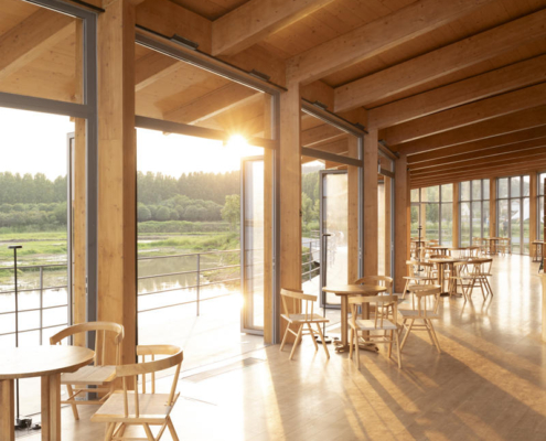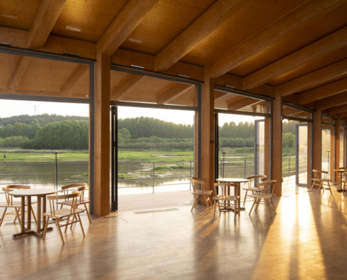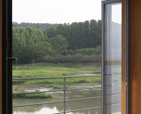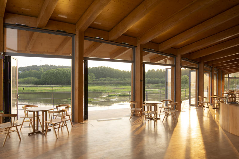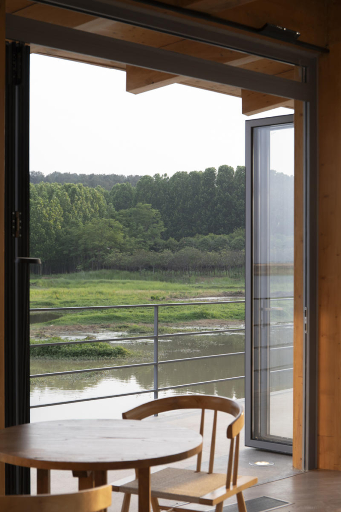 Mekan boyunca ilerledikçe, dağlar, tarlalar ve rezervuar mimari açıklıklar aracılığıyla sürekli yeniden kadrajlanarak ziyaretçilere değişken manzaralar sunuyor. Batı cephesinde, katlanır kapılar tamamen açılarak dış terasla bütünleşiyor bu da iç ve dış arasındaki sınırın belirsizleşmesini sağlıyor ve ışık, rüzgar gibi elementlerin mekan boyunca özgürce dolaşmasına olanak tanıyor.