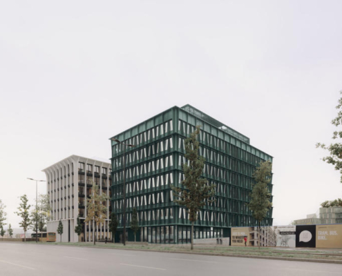 Pandeminin ardından modern çalışma alanlarının değişen ihtiyaçlarına cevap vermek amacıyla Bureaux Andrew Phillips tarafından Lüksemburg’ta tasarlanan Emerald, her saatte değişen görünümü ile çevresiyle dinamik bir ilişki kuruyor.