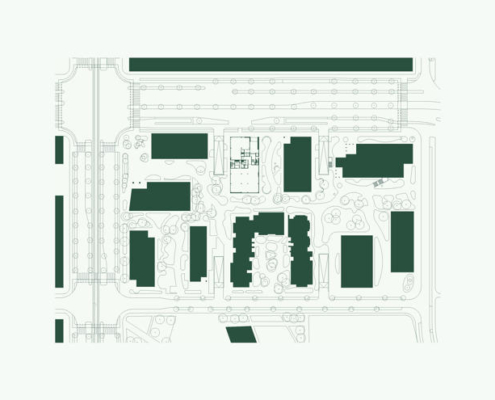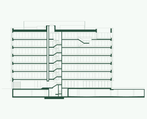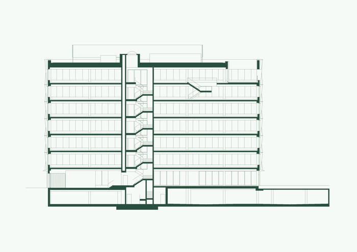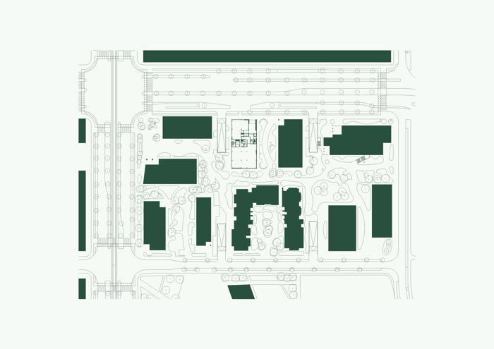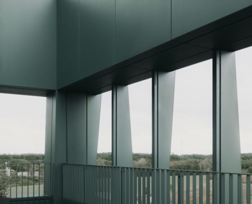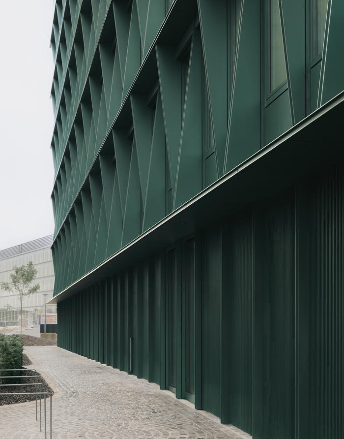 Cephe; ışık ve gölge, geçirgenlik ve opaklık arasında oyunlu bir ilişki kuruyor. Düz yüzeyler yerini derinliğe bırakıyor; katı yapılar çevreyi yansıtarak değişken bir görsellik sunuyor. Yapı, yürüyen, araba süren ya da tramvaya binen herkes için sürekli değişen bir izlenim sunuyor. Her yaklaşım yeni bir bakış açısı getiriyor. Görsel deneyim sürekli yenileniyor; zamanın geçişini ve kentin dönüşümünü yansıtıyor. Bu ofis binası, duyusal etkileşimi ön planda tutuyor. Her açıdan, her saatte farklı bir görünümle çevresiyle bağ kurmaya davet ediyor.
