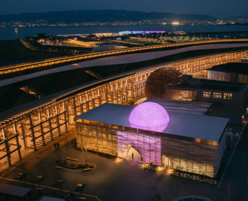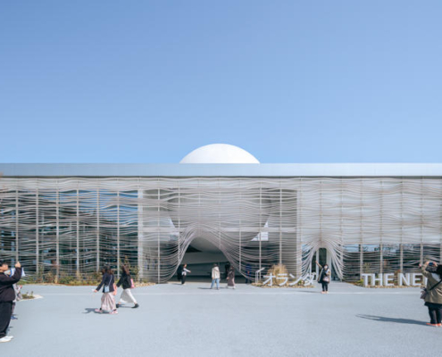 Yenilik ve iş birliğini sergileyen dairesel bir mekan olan Expo 2025’teki Hollanda pavyonu, mimarlık firması RAU Architects, mühendislik danışmanlığı firması DGMR, tasarım stüdyosu Tellart ve Japon inşaat şirketi Asanuma Corporation’ın dahil olduğu Hollanda-Japon konsorsiyumu AND BV iş birliğinde tasarlanmış ve inşa edilmiş.
