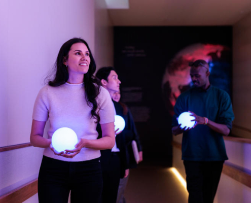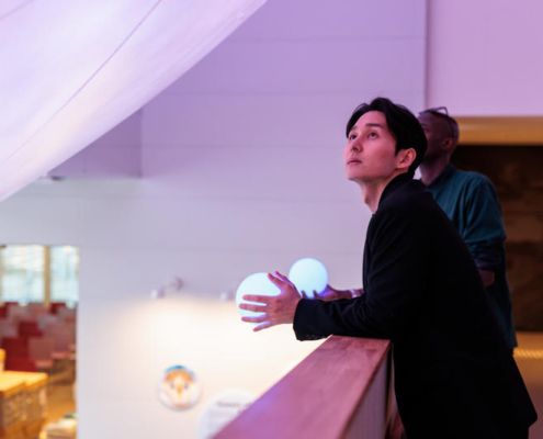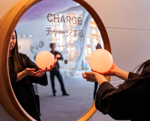 Pavyona giren ziyaretçiler, mekanın çeşitli yerlerine yerleştirilmiş enstalasyonlarla etkileşime giren küçük, parlayan bir küre alıyorlar. Bu enstalasyonlar, ziyaretçileri Hollanda ve Japonya’nın ortak tarihi ile Hollanda’nın suyla mücadelesini keşfetmeye yönlendiriyor. Ziyaretin en önemli kısmını, öncü teknolojik uygulaması ile, yapay zeka tarafından üretilen üç yüz altmış derecelik kubbe filminin izlenebileceği parlak merkezi küreler oluşturuyor. Son olarak, ziyaretçiler interaktif bir sanat eseri aracılığıyla kendi hayallerini ve gelecekle ilgili fikirlerini paylaşmaya davet ediliyor.