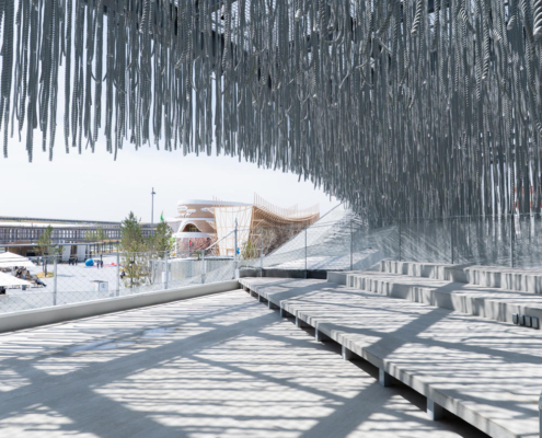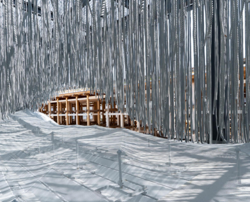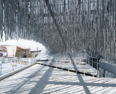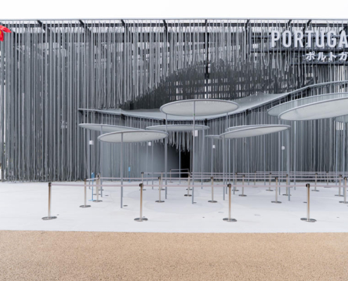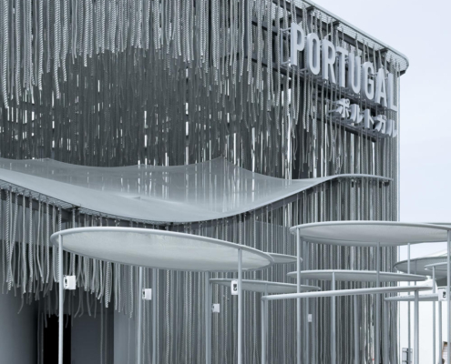 Portekiz Pavyonu, Japonya’da dalgaların, rüzgarın ve ışığın ritmiyle yaşayan; halatlar, titreşimler ve yansımalarla şekillenen özgür bir mimari deneyim sunuyor; iki ülke arasındaki okyanus ötesi bağı duyusal bir mekana dönüştürüyor.
