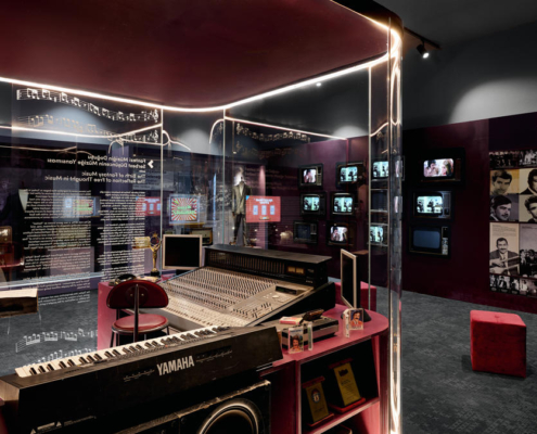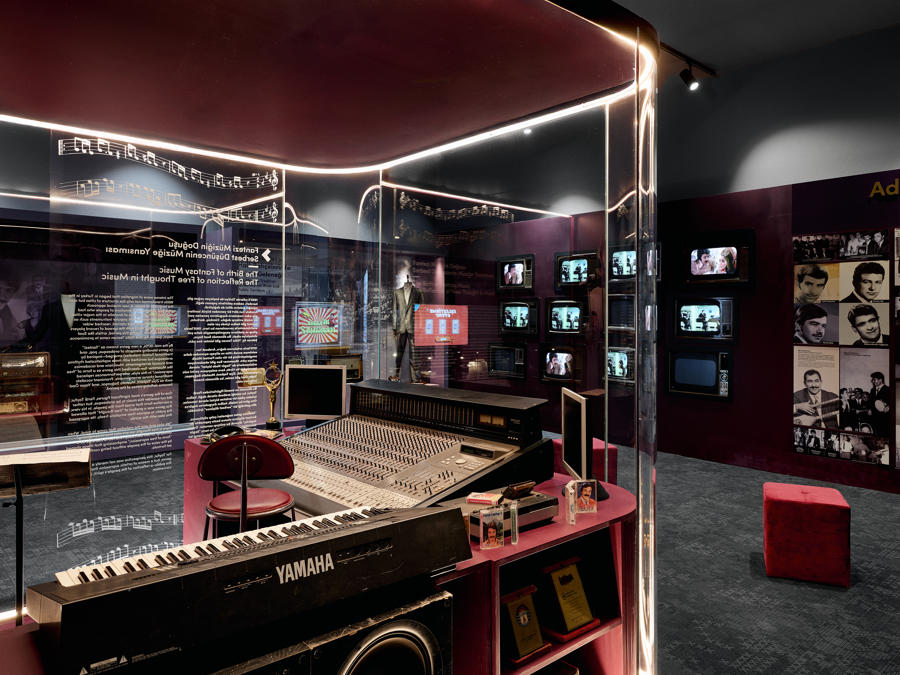 Ferdi Tayfur’un yaşam öyküsünde, başarının kolay elde edilmediği; yoğun emek, sebat ve fedakarlıklarla şekillendiği görülüyor. Bu anlatıdan hareketle müze yapısı özellikle üst kota taşındı. Ziyaretçilerin müzeye bir merdiven aracılığıyla ulaşması sağlanarak, bu yükselme hareketinin sanatçının yaşam mücadelesini simgeleyen bir deneyime dönüşmesi amaçlandı. Merdiven boyunca yerleştirilen tarih ve kısa metinlerle ziyaretçilerin, müze anlatısına adım adım hazırlanması hedeflendi. Merdivenin her iki yanında konumlandırılan ağaçlar sayesinde yapının yeşil doku içinde kısmen kaybolması hedeflendi. Bu ağaçlar, aynı zamanda sanatçının çiftçi kökenlerine gönderme yapan sembolik bir unsur olarak ele alındı. Üst kotta konumlanan müze yapısı, Ankara ve Osmaniye otoyolundan algılanabilir bir noktada yer alarak Sarıçam’ın giriş aksında güçlü bir siluet oluşturuyor. Konut yoğun bir çevrede konumlanan yapı, modern mimari diliyle çevresinden bilinçli bir biçimde ayrışıyor ve kentsel ölçekte bir referans noktası olmayı hedefliyor. Müze yapısı, bir mücevher gibi parıldayan bir “ışık kutusu” olarak kurgulandı. Sanatçının şarkıları ve filmlerinin hayranları için taşıdığı umut ve eşlik etme duygusu, mimari bir ifadeye dönüştürüldü. Cephede kullanılan polikarbon malzeme sayesinde yapı gündüzleri opak bir kütle olarak algılanırken, gece saatlerinde arkasına yerleştirilen aydınlatmalarla bir ışık kutusuna dönüşüyor. Beyaz cepheye kontrast oluşturması için zemin katta andezit doğal taş tercih edildi; taşlar, farklı derinliklerde döşenerek yüzeyde güçlü bir doku elde edildi. Üst kota taşınan bu “kutu”nun altında oluşan boşluk, açık hava sineması olarak değerlendirildi. Bu alanda herhangi bir kolon ya da duvar bulunmaması hedeflendiği için üst yapı tamamen çelik strüktürle tasarlandı. Zemin katta yer alan müze yönetimi ofisleri, depo ve ıslak hacimler ile batı ucundaki duvar, üst yapının taşıyıcı kaidesini oluşturdu. Kuzey – güney yönünde uzanan bu açık alan, yaz aylarında serin bir kamusal mekan olarak çalışıyor. Müze katından başlayan dolaşım, sakin bir rampa aracılığıyla meydan ve parkı izleyerek zemine ulaşıyor. Bu rampa, girişte konumlanan heykeli sarmalıyor; rampanın yüzeyine yerleştirilen film afişleriyle yapı ile sanatçının üretimleri arasında doğrudan bir bağ kuruluyor.
