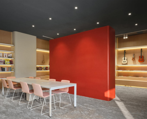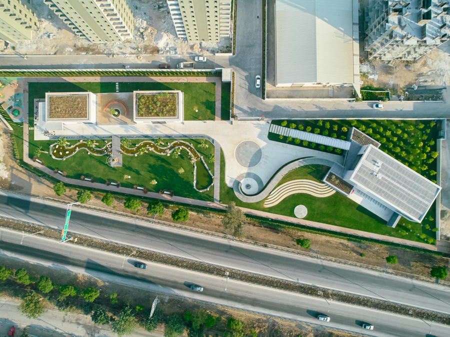 Doğu bölümde doğrusal bir yolun güneyine kütüphane ve kafe, kuzeyine ise yeşil alan yerleştirildi. Yeşil alanın merkezinde konumlanan çeşme, çocuk sanat atölyesiyle aynı aks üzerinde tasarlandı. Bu iki yapıda doğal kırmızı traverten kullanılarak alanın karakteri güçlendirildi. Peyzajda biri doğal dere, diğeri geometrik havuz olmak üzere iki farklı su elemanı kullanıldı; bu ikilik, sanatçının köy kökeni ile kent yaşamı arasındaki geçişe gönderme yapıyor. Kafe ve kütüphane yapıları, basit geometrik formlarla tasarlandı. Cephelerde müze ile aynı malzemenin kullanılması planlanmış olsa da bütçe nedeniyle boyalı yüzeylere geçildi; bu karar, tamamlanan projede daha dengeli bir sonuç elde edilmesini sağladı. Her iki yapıda da yeşil çatı uygulaması gerçekleştirildi. Kütüphane, özel olarak bir müzik kütüphanesi olarak kurgulandı. Kendi enerjisini üreten, yağmur suyunu depolayan ve sürdürülebilirlik ilkelerini merkeze alan Ferdi Tayfur Müzesi ve Sanat Parkı, doğayla kurduğu ilişki ve kamusal kullanımıyla Sarıçam için yeni bir çekim noktası olmayı amaçlıyor.