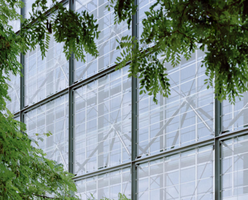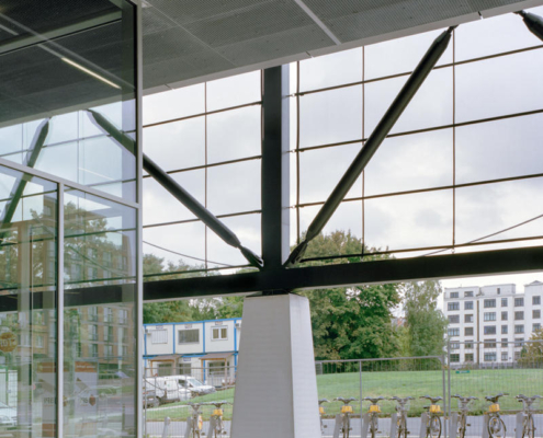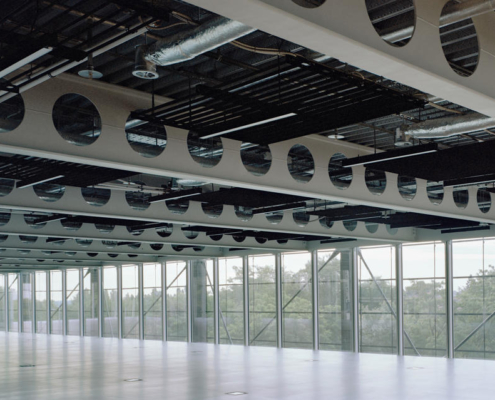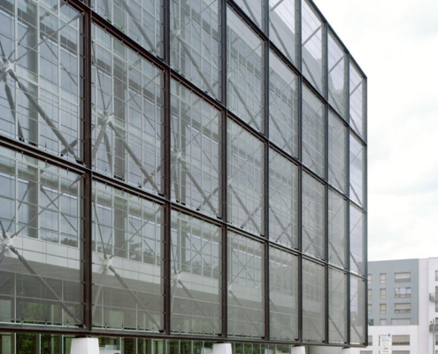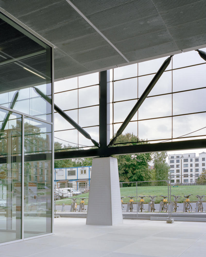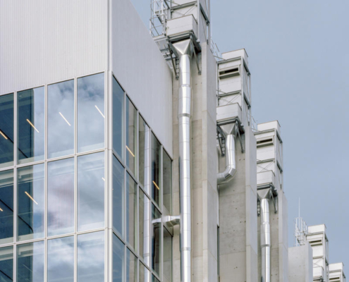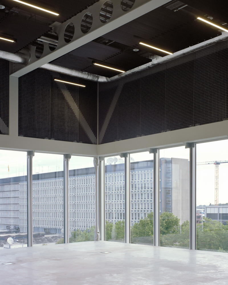 Taşıyıcı sistem elemanlarının çevrede konumlandırılması ve ana teknik servislerin düşey olarak gruplanması, tamamen serbest planlı katlar elde edilmesini sağlamış. Yapı, her biri kendi kullanım ömrüne ve gelecekteki gereksinimlerine uyarlanabilir biçimde tasarlanmış farklı yapım sistemlerinden oluşuyor. Strüktür, cephe ve iç mekan bitişleri bağımsız katmanlar olarak ele alınmış; bu sayede bakım, yenileme ve dönüşüm süreçlerinin zaman içinde ayrı ayrı yürütülmesi mümkün kılınmış.