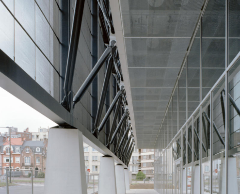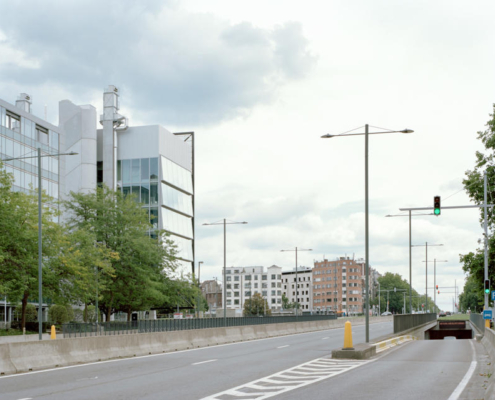 Frame binası, Brüksel’in doğu sınırında, kenti terk eden ana otoyollardan biri ile önemli bulvarlardan birinin kesişiminde konumlanıyor. Yapı, daha geniş ölçekli bir kentsel dönüşüm sürecinin öncü parçası olarak, Belçika’nın ulusal televizyon ve radyo istasyonları etrafında şekillenmiş mevcut medya bölgesinin yeniden yapılandırılmasına katkı sunuyor.