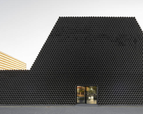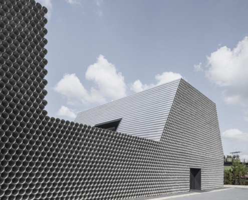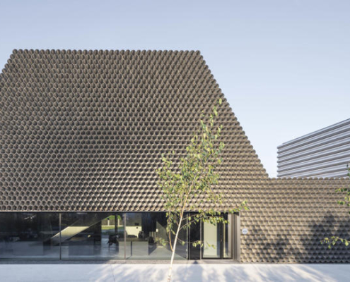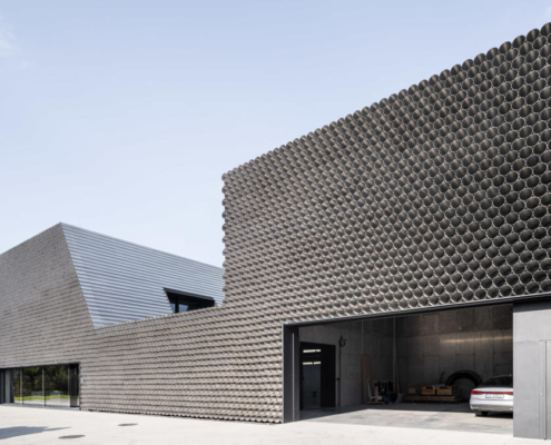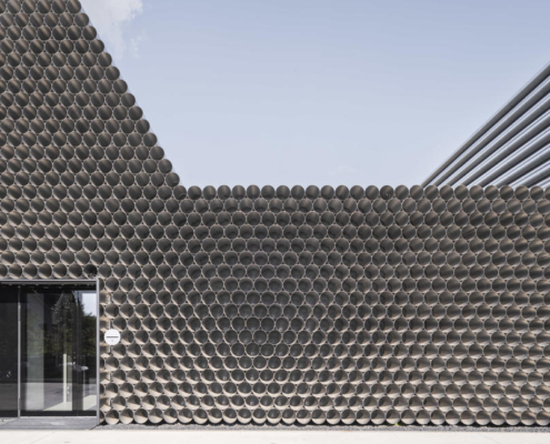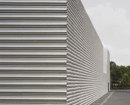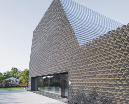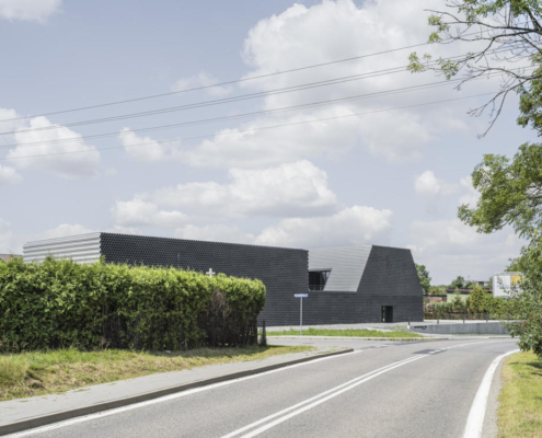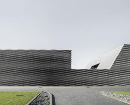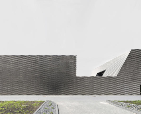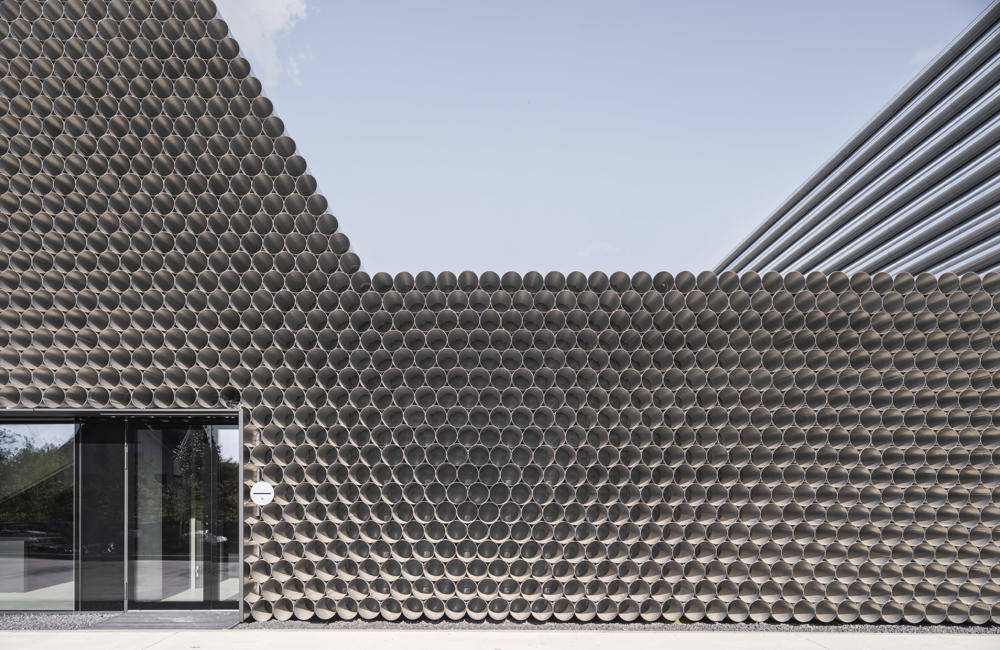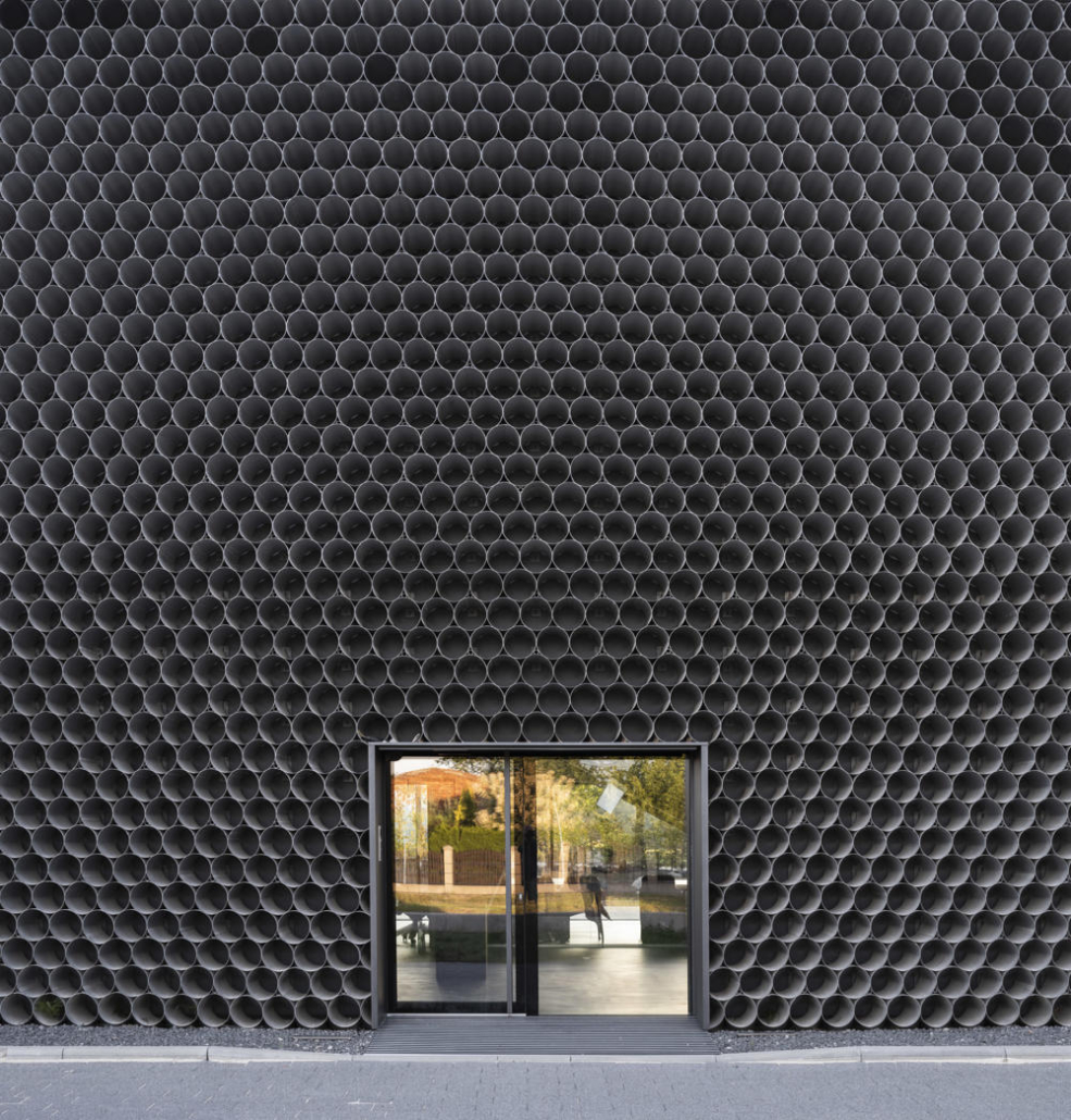 Boru ticareti üzerine özelleşmiş bir şirket olan Gambit’in vitrin olarak da işlev görecek olan ofis-depo binasının tasarımını KWK Promes ve Robert Konieczny gerçekleştirmiş. Projenin mümkün olan en düşük maliyetle yapılması istendiği için, malzeme olarak boruların kullanılması istense de, gün ışığı gibi etkilerden dolayı yaşanacak oksitlenme riskinden ötürü, ucuz ham alüminyum levhalar ile boru görünümü elde edilen birimler kullanılmış. Ofis ve depo bölümleri bir bütün olarak ele alınmış. Dışarıdan bakıldığında bir boru yığınını andıran bina, şirketin hangi alanda çalıştığına dair direkt bir referans veriyor. Önceden alanda bulunan dikdörtgen formdaki üretim salonu, yeni tasarım için de ilham olmuş. Üç ana işlev etrafında şekillenen mahal programı, binanın formunu da şekillendiriyor.