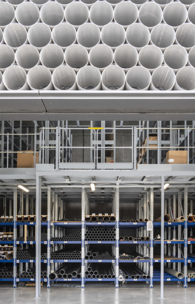 KWK Promes ve Robert Konieczny imzalı Gambit Office, boru ticareti üzerine uzmanlaşmış bir şirketin ofis ve depo alanı olarak, şirketin kimliğine referans verecek şekilde tasarlanmış.