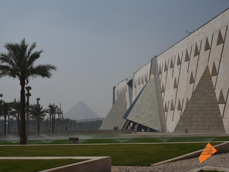 Yapı, binlerce yıl önce Nil Nehri tarafından şekillendirilmiş bir çöl platosu üzerinde yer alıyor. Müzenin tasarımı, piramitlerle kurduğu görsel eksen üzerinden şekillendi. Giriş aksından başlayan kütle, üç piramidin doğrultusuna hizalanarak çöl zemininden yükseliyor. İç duvarlar bu eksenleri takip ederek yelpaze biçimli bir plan oluşturuyor; çatı eğimi ise piramitlerin zirvesine paralel biçimde yükselir ancak hiçbir zaman onları aşmıyor. Bu düzen, müze ile piramitler arasında doğrudan bir mekansal diyalog kuruyor ve piramitlerin manzaraya dâhil olduğu benzersiz bir bakış oluşturuyor.